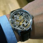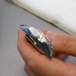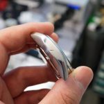 Urmaker Kjartan foretok gladelig en liten demonstrasjon av deres PUK buesveisemaskin for å vise hvordan konseptet fungerer i praksis. Ordinært er dette en langt mer tidkrevende prosess for å oppnå best mulig finish, men selv under den relativt korte demonstrasjonen er det umulig å ikke la seg imponere over resultatet. Som bildene viser ble en urkasse påført nokså dype sår som etter behandling var så og si umulige å skimte med det blotte øye.