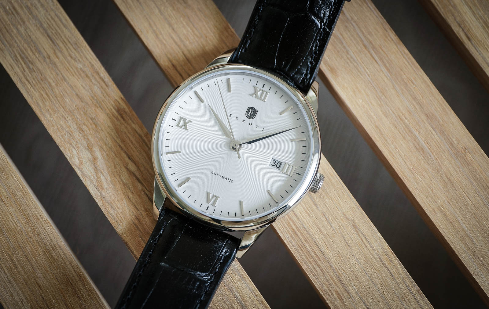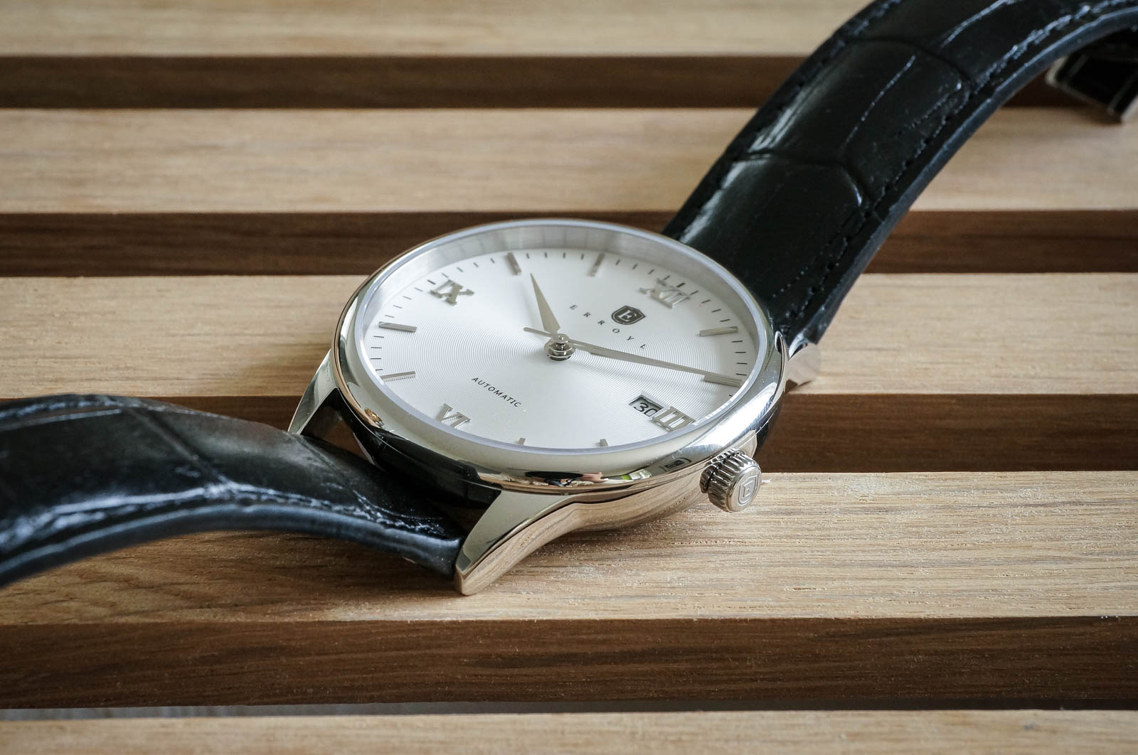 Erroyl har valgt å gå for et helpolert ytre, med buet bezel, avrundet mellomkasse og buet baklokk. Gitt de fysiske dimensjonene, fungerer dette bra, og kombinert med relativt korte buede og avrundede horn, fremstår uret som nokså kompakt. Det er bra, for klumpete og store helpolerte ur har en tendens til å fremstå som noe simple.