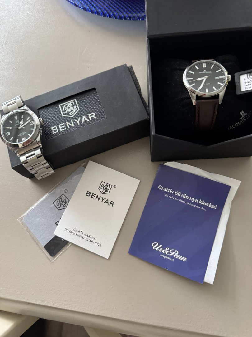 Pene klokker , bruksmerker finnes men alle 4 Swiss har strøkene skiver og Safirglass - Benyar og Jaques Lemans er nye klokker