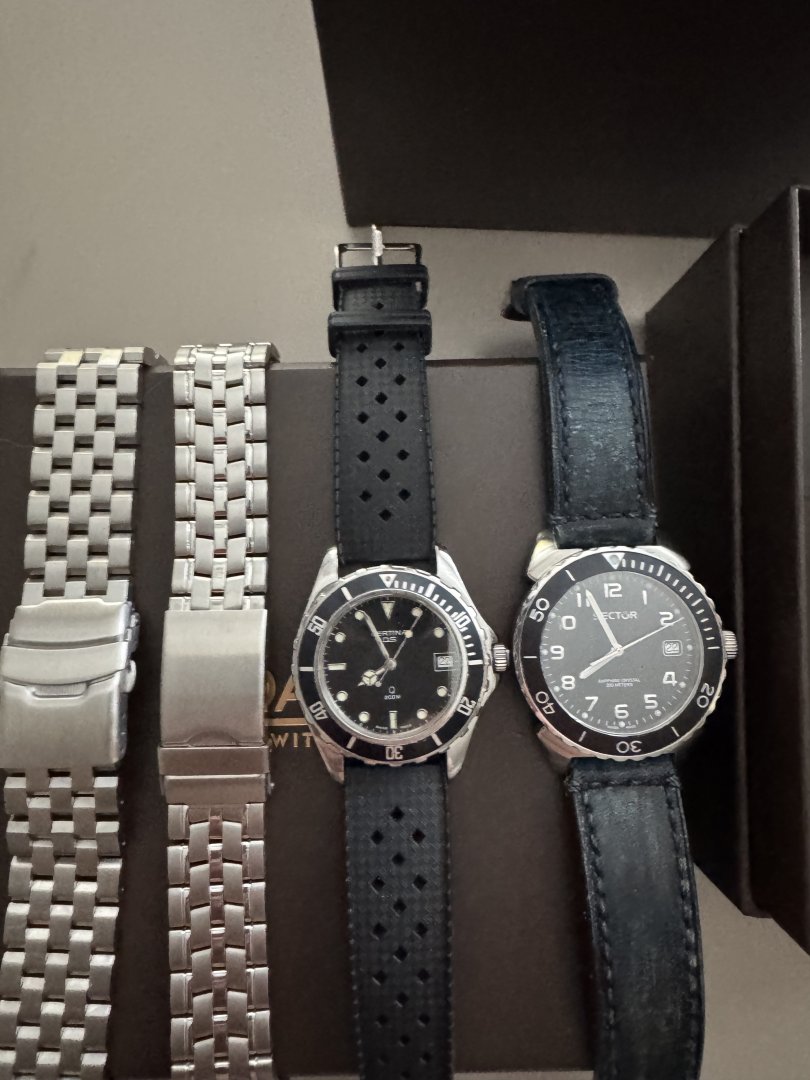 Selger 6 fine klokker under ett, 4 er SwIss Made med Safirglass + 1 Benyar og 1 Jaques Lemans Klokkene er helt i orden tikker å går med nye batterier.