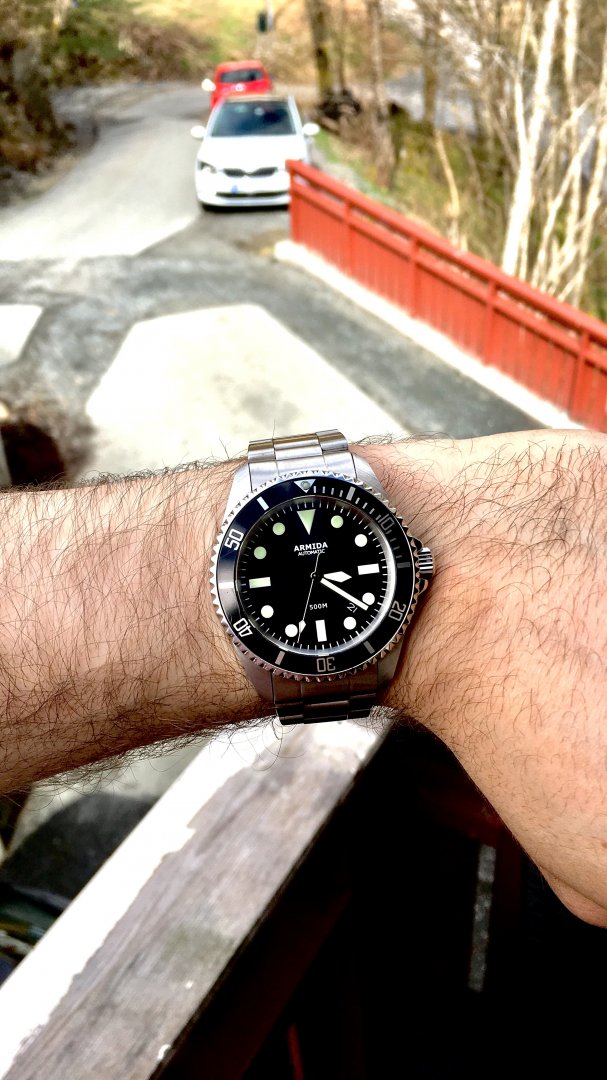 - Lumed bezel (C3 SuperLuminova, very bright) and hands. Not sure what material the bezel is.