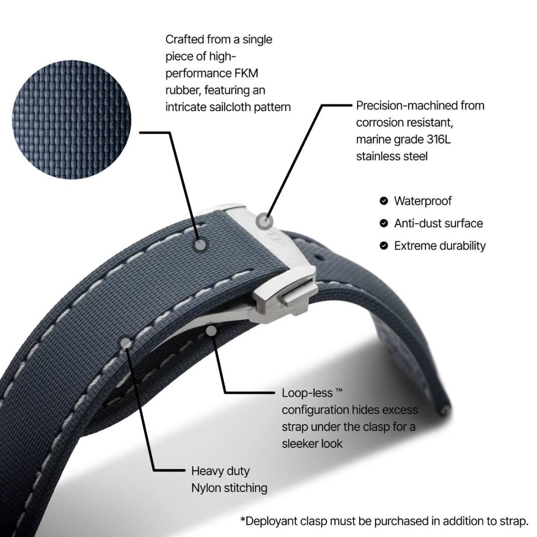 Loop-less™ is our renowned strap system designed for folding deployant clasps. You set your size once, then simply slip it on and click shut - no extra keepers, no loose ends.