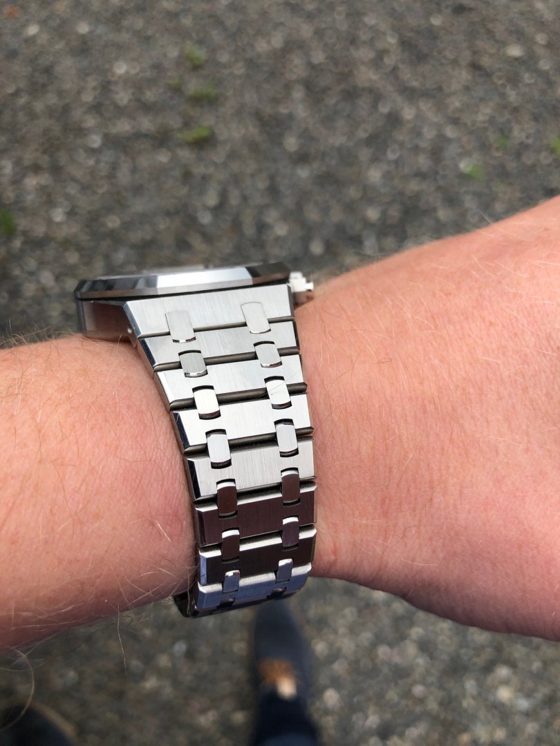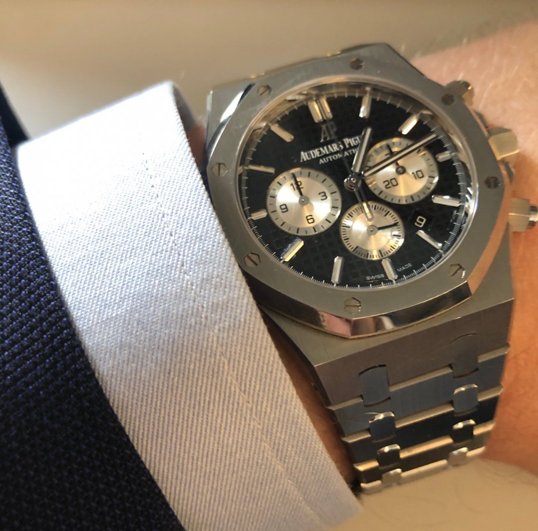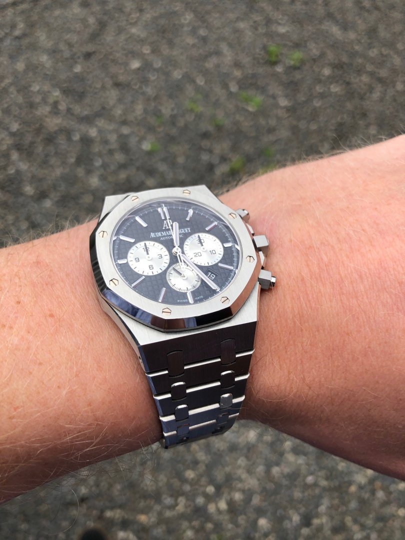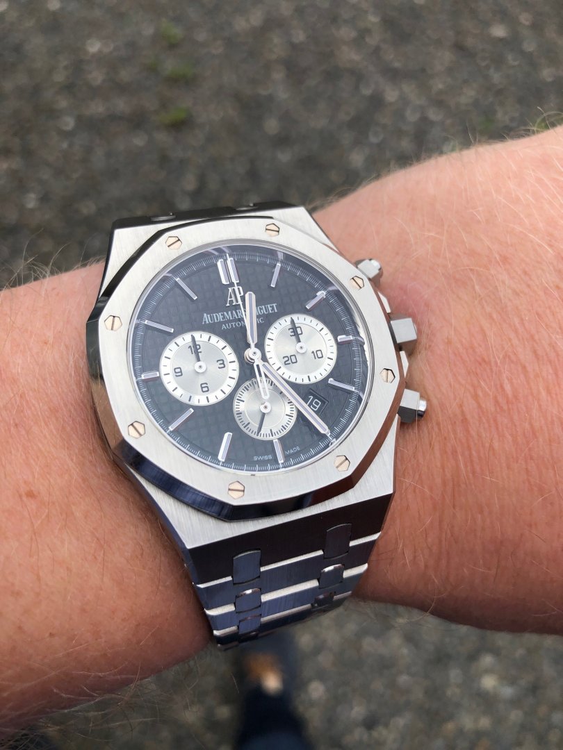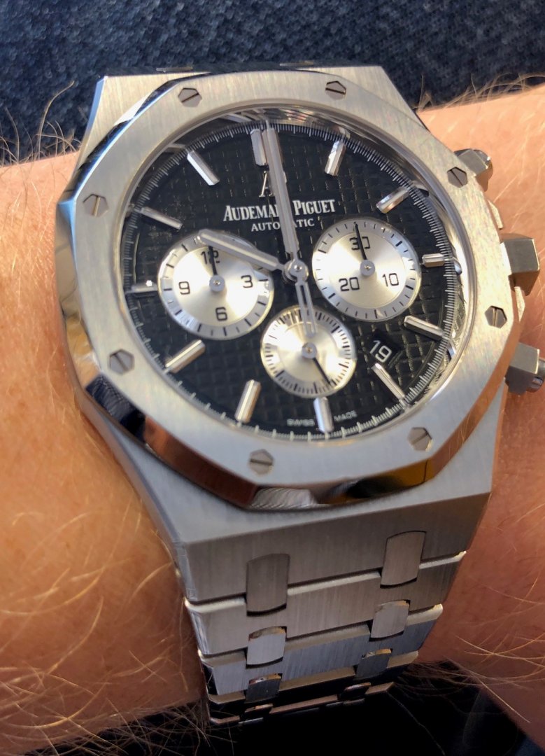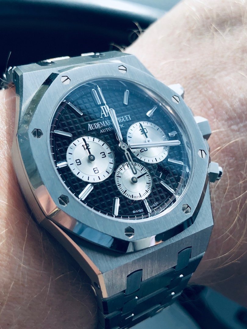 Materiale og skive: Stål, svart skive med sølv sub dials
