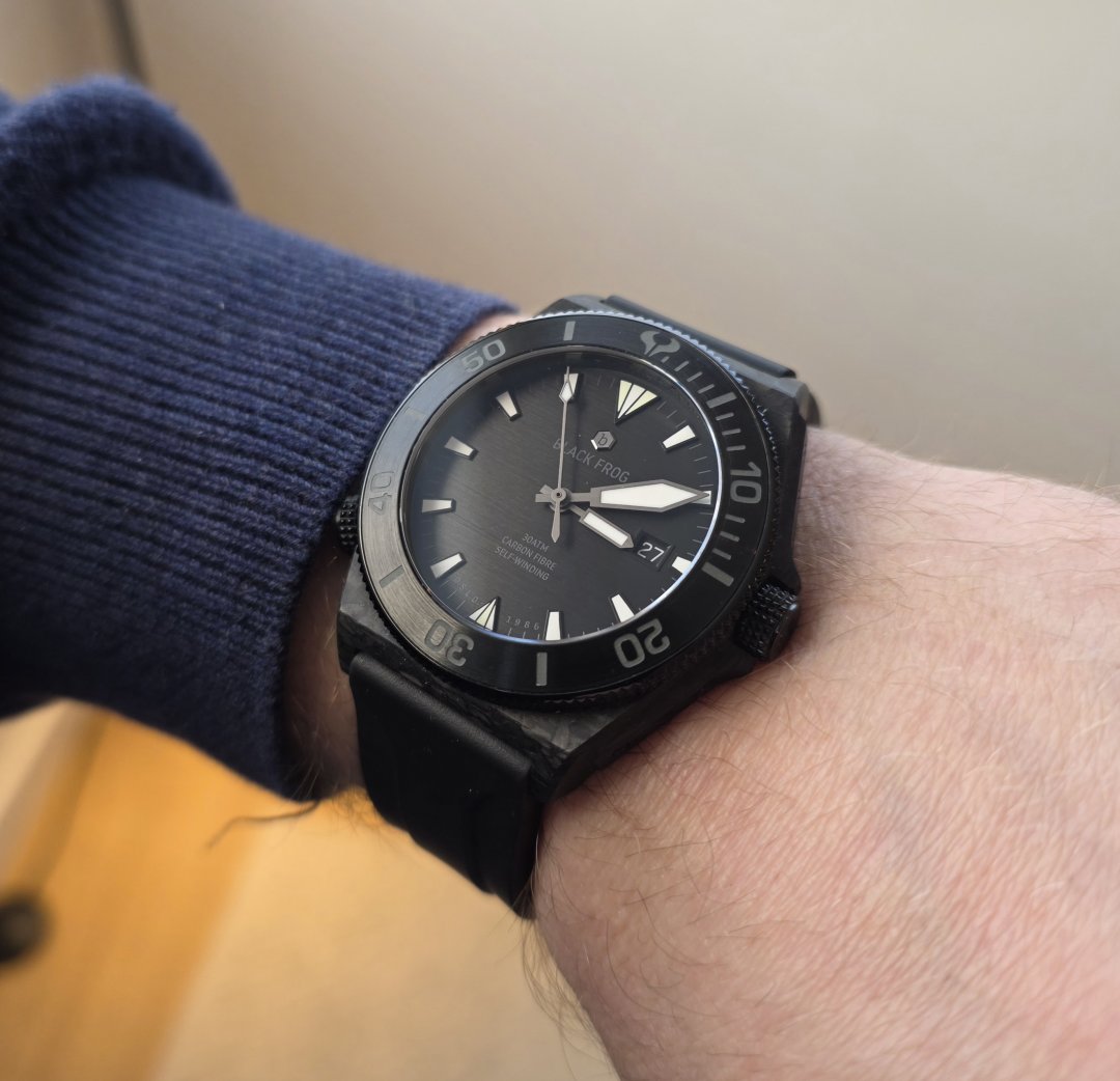 Knalltøff klokke i karbonfiber, med heliumventil og 300m vanntett.