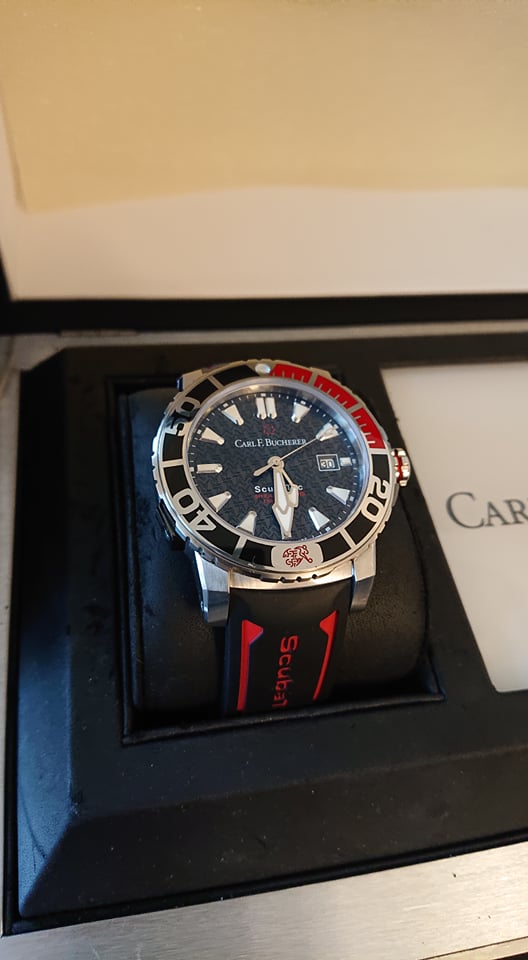 Selger en strøken norsk kjøpt AD 2016 modell CFB Scubatec! Denne er den spesielle varianten som ble laget ved avtale med Sveits Fotball nasjonal lag. Klokken er kjøpt 30.04.2016. Ut ifra det jeg vet så fins det KUN to av sånne i Norge. Så her har du anledningen til å