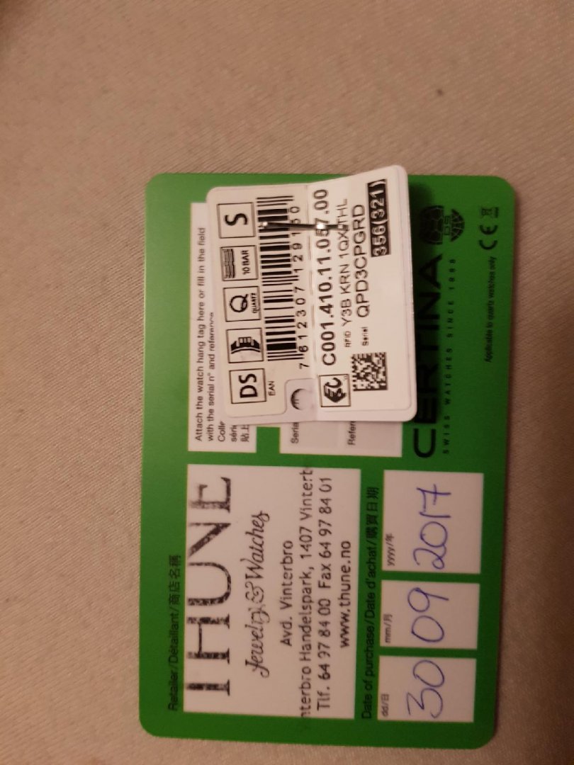 Merke, modell og år: Certina, 2017, modell: C001.410.11.057.00