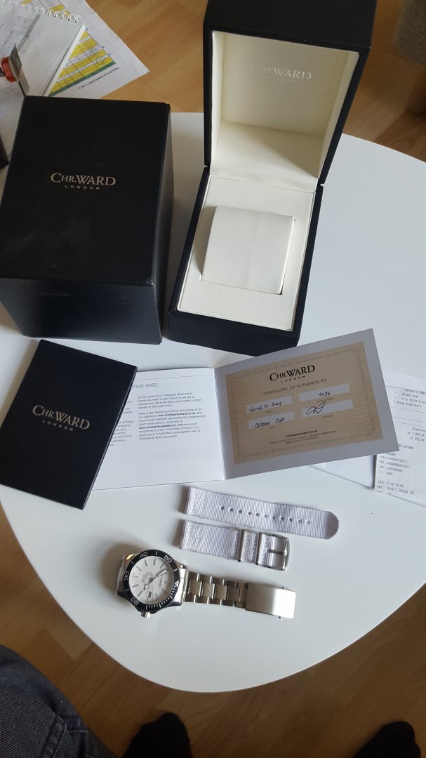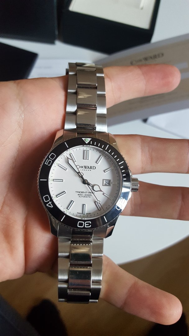 Lite/pent brukt Chr Ward Trident Pro. Mange kjenner nok til denne, så introduserer den ikke nærmere. Kommer med normale hairlines etter roterende bruk. Ny i 4 kvartal 2016 (husler ikke spesifik dato atm). Kommer komplett med alt av boks og papirer (samt mva).
