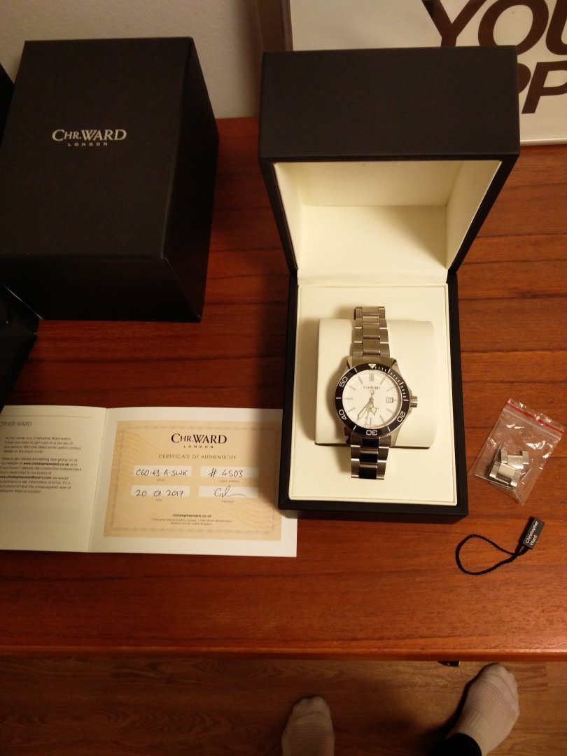 Selger meget fin Christopher Ward c60 trident pro 600 fra januar 2017. Den er lite brukt da den ble litt for stor for meg og fremstår derfor i meget god stand.
