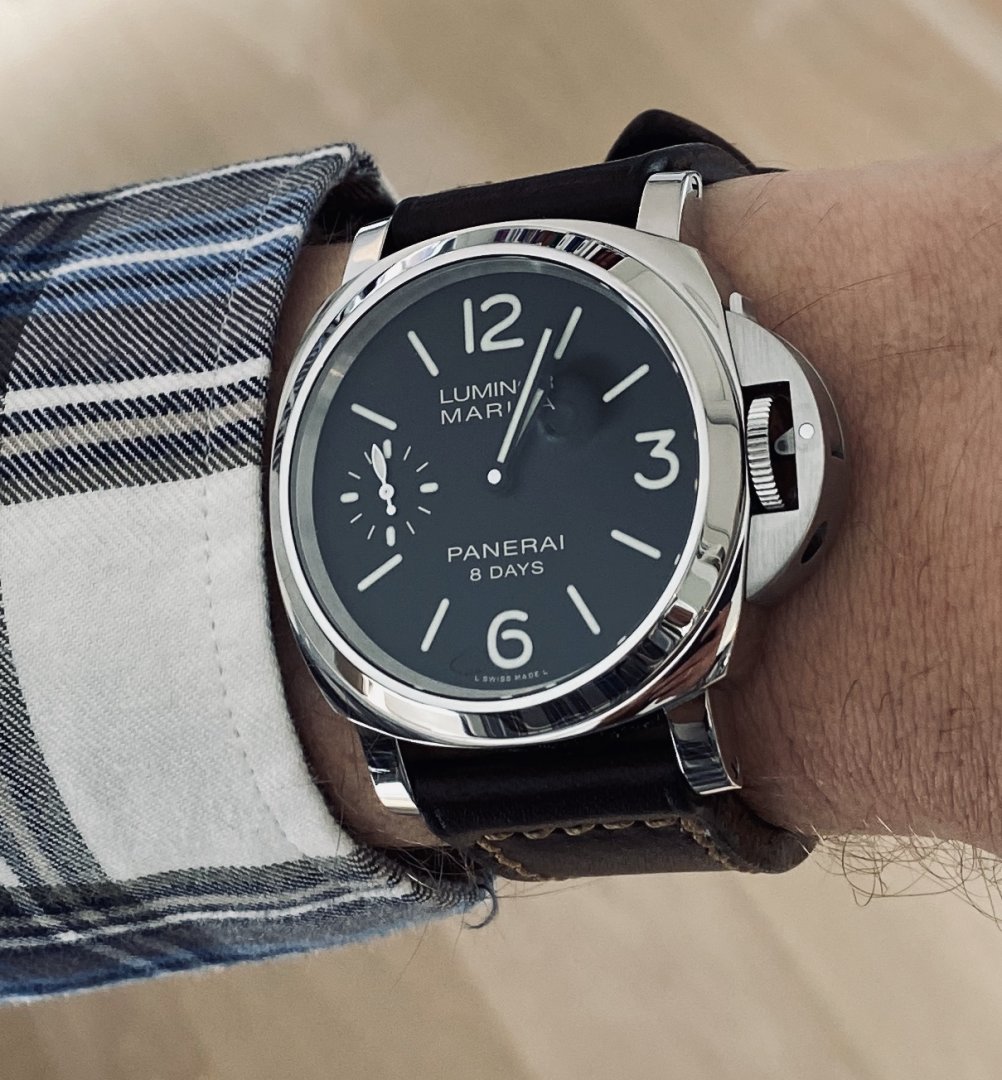 Takk - 38 mm ja. Handlet hos Thune. Hyggelig bekjentskap dette, finish på et annet nivå enn jeg er vant til, fint balansert mellom sporty og elegant, særlig pga den nesten helbørstede kassen. Føles som en klokke jeg kan bruke til alt. Lav profil og integrert lenke gjør at den ligger godt på armen. Fint spill i blåfargen på skiva og moro å titte verk av dette kalibret.Nydelig Laureato!! Førsteinntrykket? 38mm?