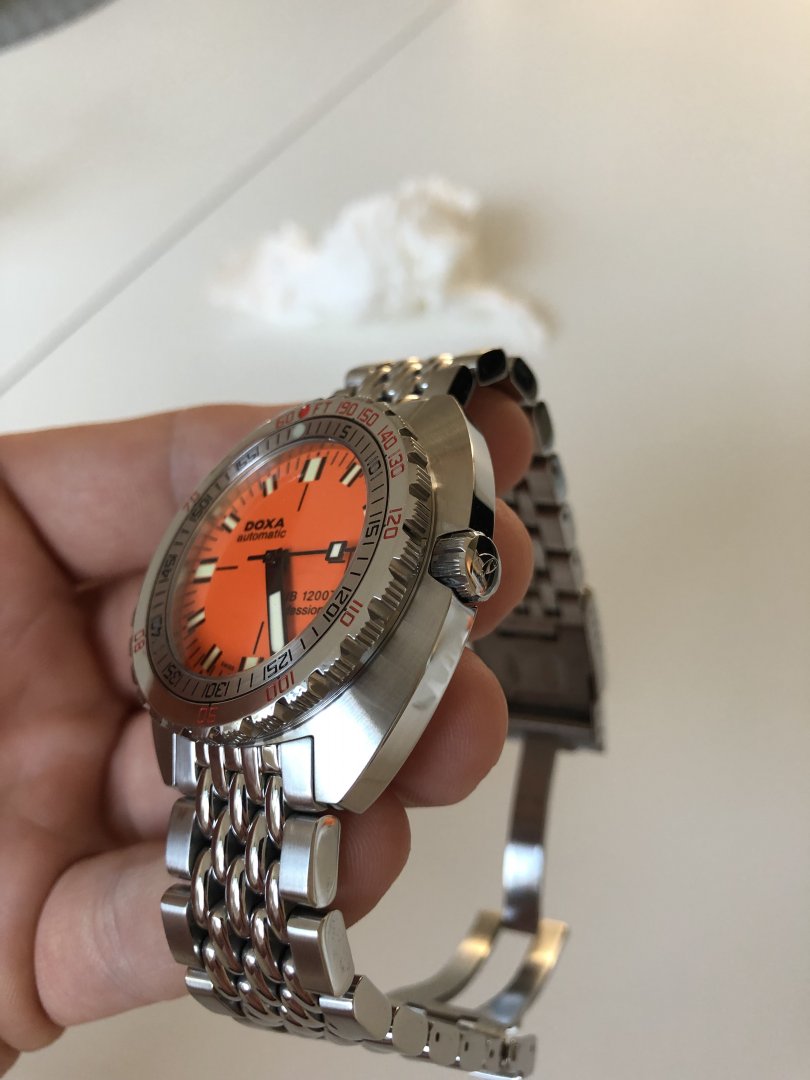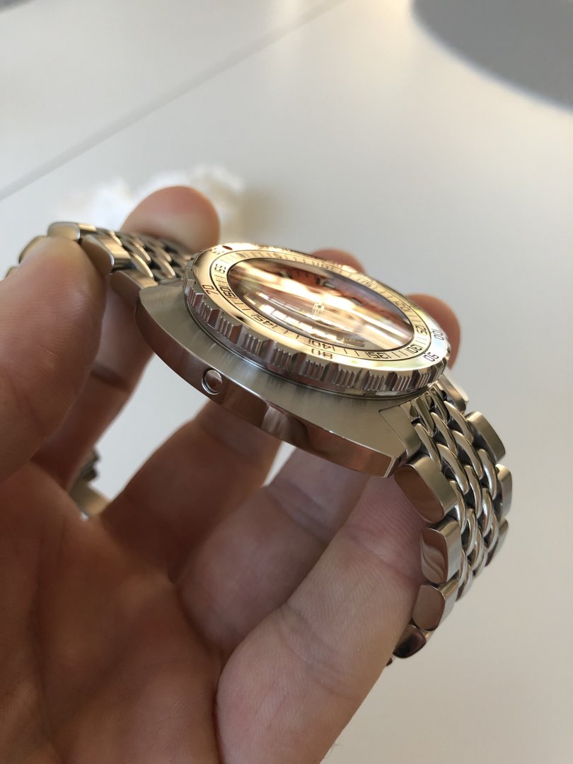 Klokken er lite brukt og fremstår meget pen, men uunngåelige hairlines finnes på bezel.