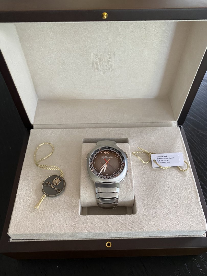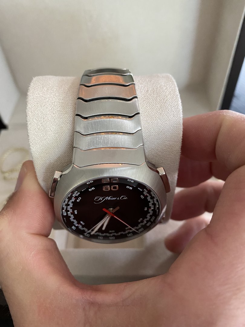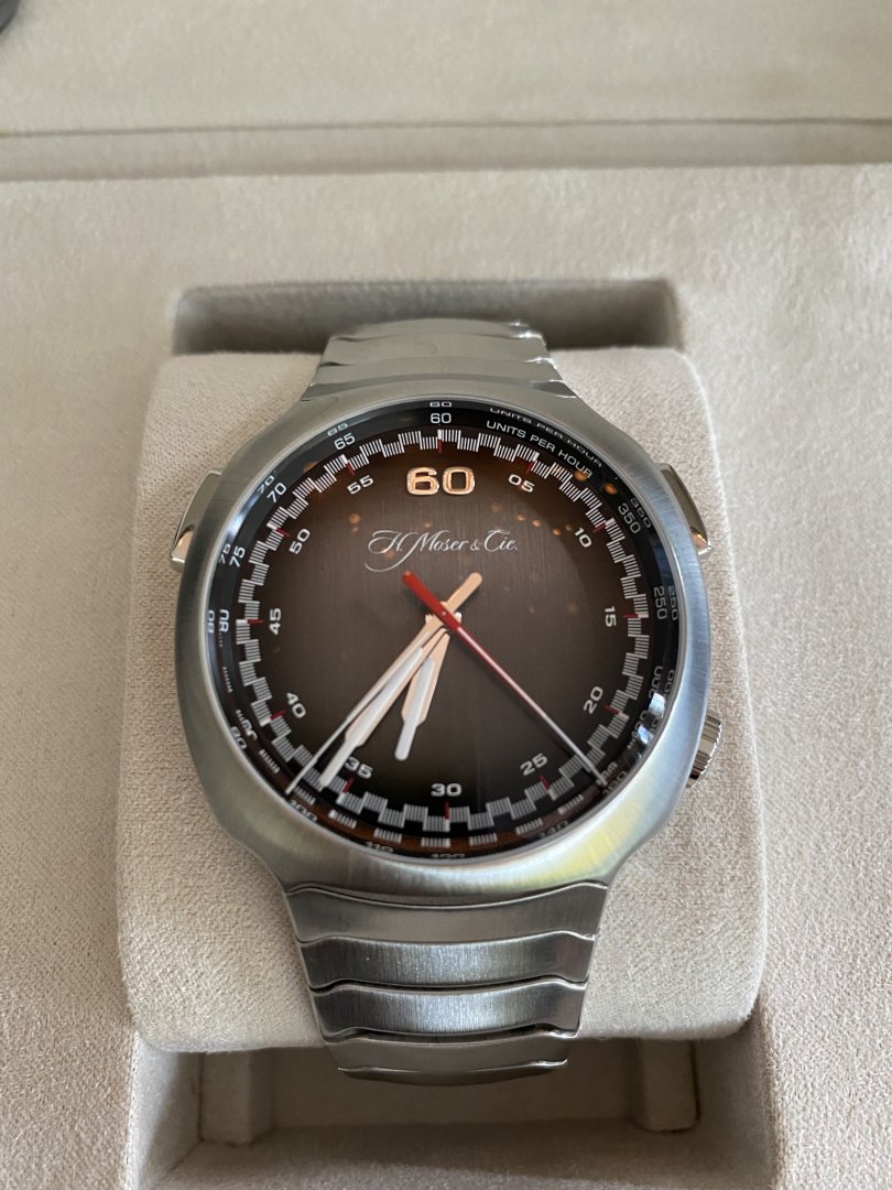 Grunnet andre prioriteringer luftes denne herligheten for salg. Dette er den limiterte utgaven av Moser Streamliner Flyback Chronograph (6902-1200), og dette skal visstnok være den siste som ble solgt fra AD av de 100 som ble laget og den eneste som er solgt i Norge. Det ligger ingen tilsvarende til salgs på Chrono24 nå, men den siste som lå ute var annonsert til ca. 480knok og det er årelange ventelister på Streamliner generelt. Jeg er ikke ute etter å spekulere i gevinst på denne klokken, men ønsker at den skal gå videre til en entusiast som forstår hvor eksepsjonelt dette uret og urverket er (og som trolig vil få et attraktivt samlerobjekt med på kjøpet). Selges derfor til veiledende pris (422.000,-). Klokken fremstår som ny. Alt av originalt tilbehør og kvittering følger selvsagt med. Klokken er kjøpt ny av meg hos Bjerke i April i år.