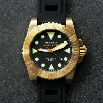 Selger en helt ny og ubrukt Helson Sharkdiver i messing. Mottok denne fra Helson for få dager siden og har bare vært prøvd på hånden. Selges da nytt ur ble kjøpt før klokken ble mottatt.