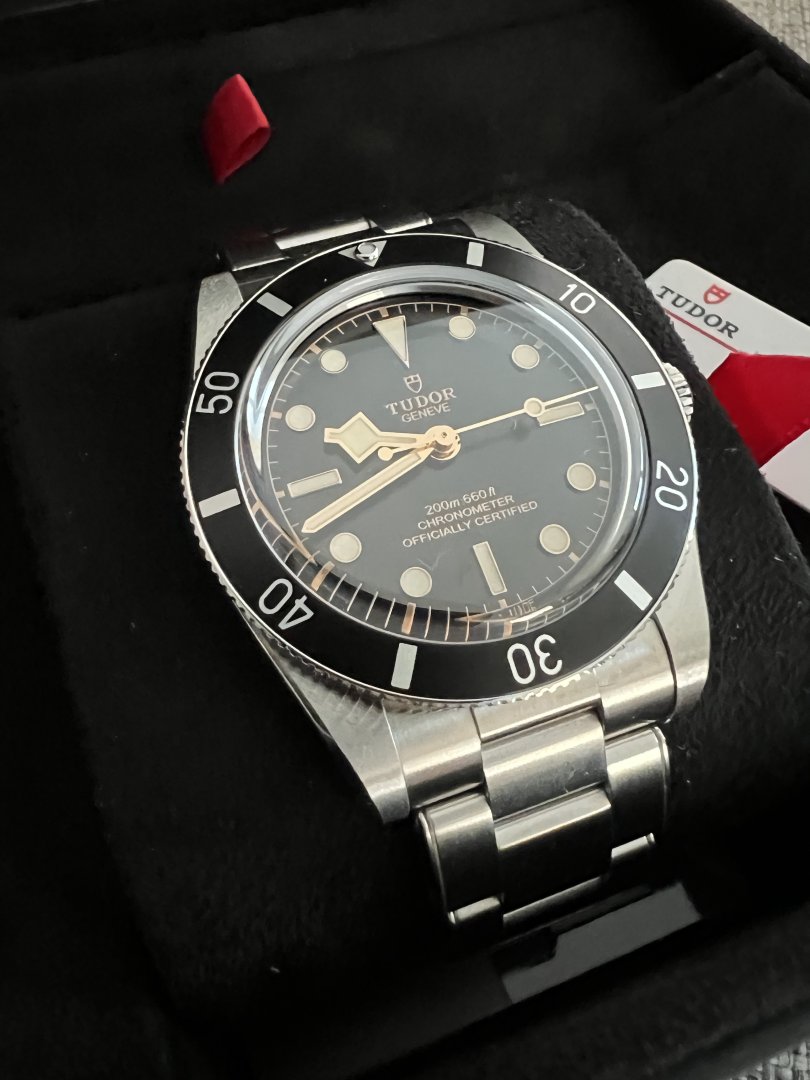 Vurderer å selge ny innkjøpt BB54, klokken er helt ny og ubrukt, lenken er juster av AD til å passe meg, men er utover det ikke brukt. Plast er fortsatt på. Komplett fra norsk AD