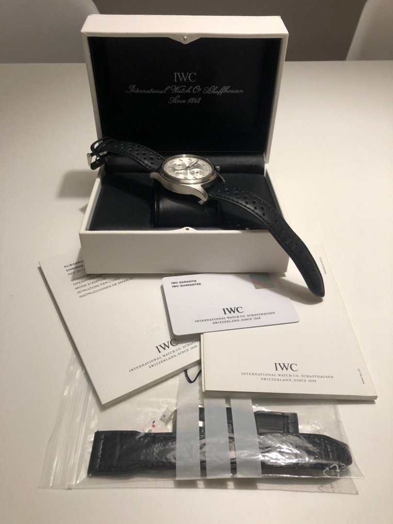 Klokken er 17.01.2019 nypolert hos Optura remstår nå tilnærmet ny. De skiftet samtidig pakninger og sjekket uret for avvik. De konkluderte med at det ikke var servicebehov p.t. Utover dette ukjent servicehistorikk. Det medfølger en splitter ny sort IWC skinnrem med tilhørende ny IWC Spenne. Klokken selges "som den" er og den kommer komplett med boks, garantibevis, booklets samt kjøpspapirer. Ikke MVA papirer.