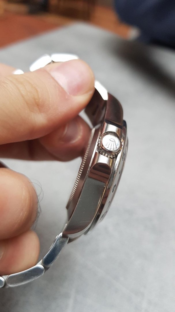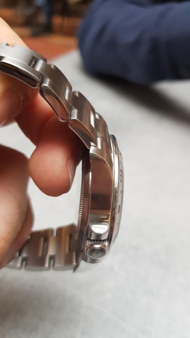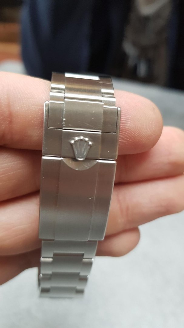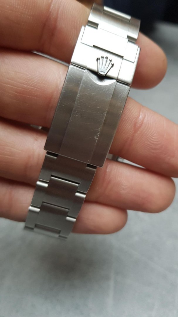 Klokka har forsåvidt aldri blitt polert eller servert, da det ikke har vært behov for det. Denne kommer med grønn tag, som betyr at det anbefalte serviceintervallet fra Rolex sin side er 10 år.