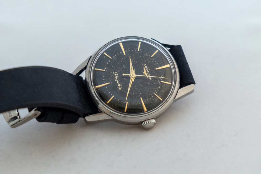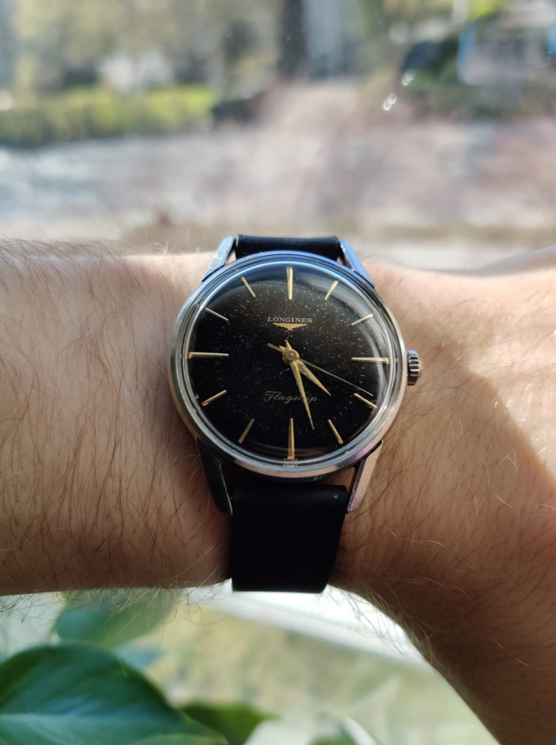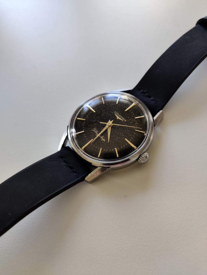 Manuelt opptrekk som trekkes opp lett og holder tiden meget bra. 17 rubiner, og fikk full overhaling juli 2020. Original urskive (såkalt "stardust" dial), original krone signert Longines, Flagship-logo på baklokket. Kassen fremstår skarp og upolert. 30LS regnes som en av de bedre urverkene laget av Longines og klokken er i god stand. Longines-spenne medfølger. Utstyrt med en custom made lærreim på 16mm laget av Ballovare Lærarbeid fra Melhus på spesialbestilling.