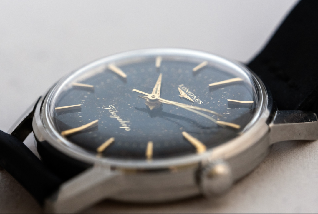 "The original serial number 11'646'157 identifies a wristwatch in stainless steel bearing the reference 104, part of the Flagship collection. It is fitted with a Longines manually wound mechanical movement, caliber 30LS and was invoiced on 7 December 1962 to the company Hausammann, which was at that time our agent for Sweden and Norway" .