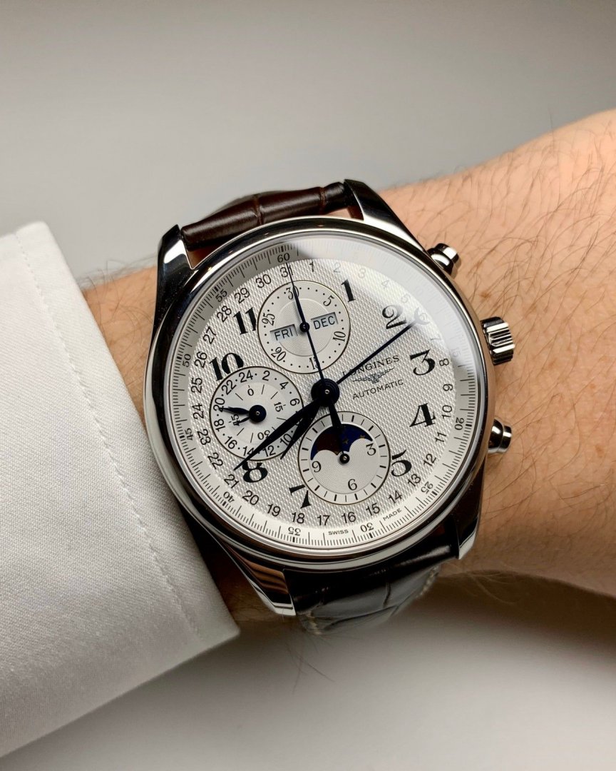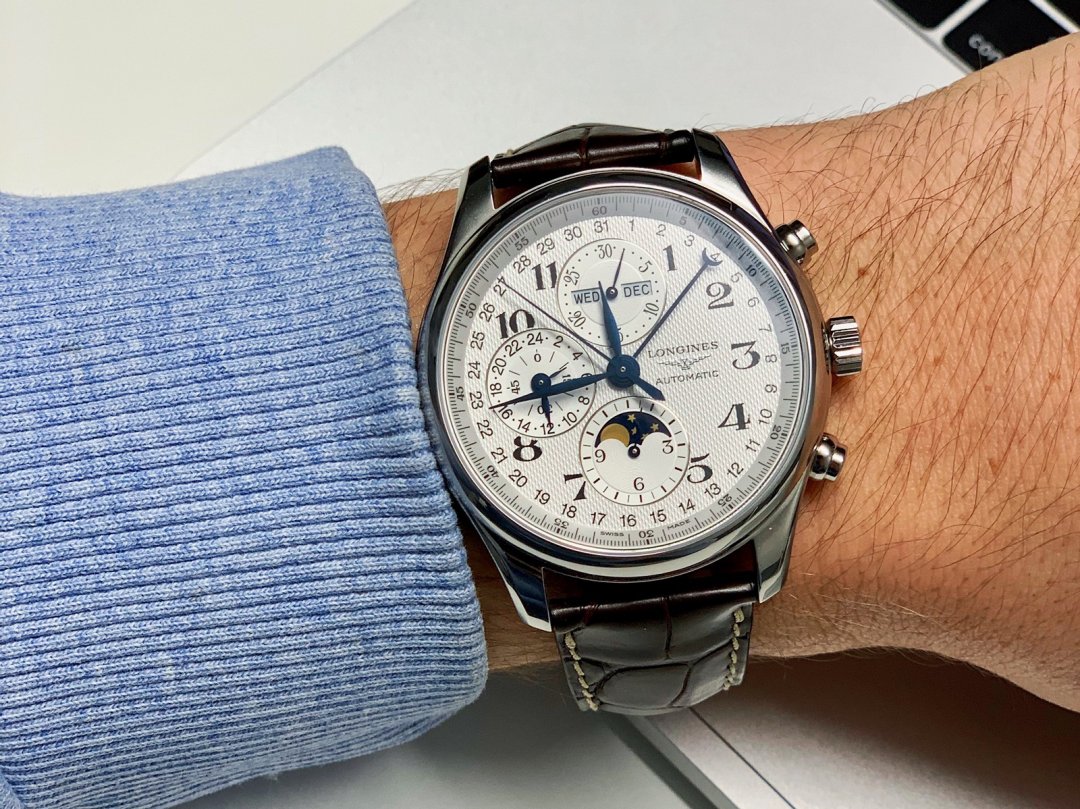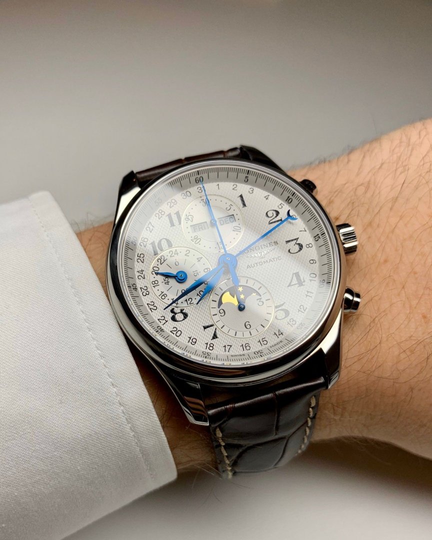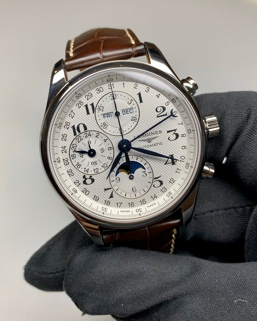 Til salg er en meget flott Loninges Master Collection Moonphase. Klokken er lite brukt og er i utrolig god stand, så å si nytt. Jeg er andre eier, men klokken har vært ubrukt fram til jeg kjøpte den i desember. Klokken er 42 mm, og sitter utrolig godt på hånden. Boks og stemplet garantikort følger selvfølgelig med, og jeg har i tillegg hatt klokken inn til urmaker for regulering.