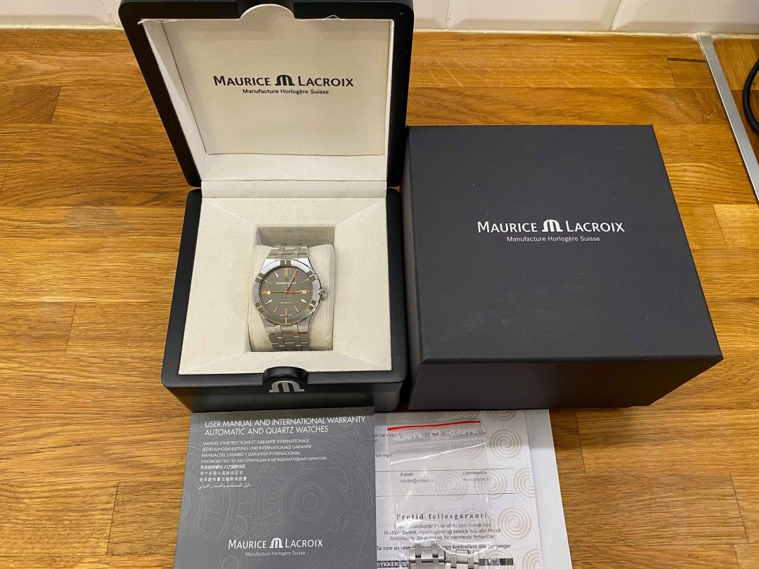 Nydelig Aikon med den ettertraktede antrasitt skiven til salgs. Uret ble kjøpt ny av meg i juli 2019 fra Urmaker Christensen, og er brukt i rotasjon med andre ur.
