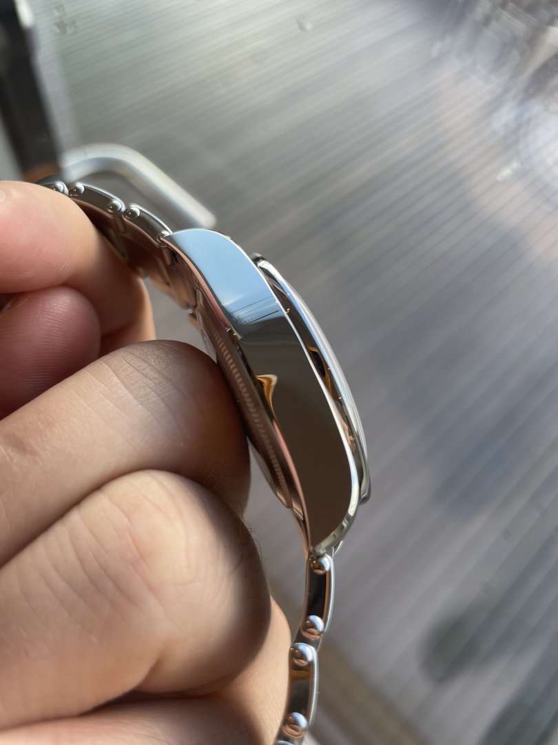 Klokken kommer komplett med alt som var med som ny. Inner og ytterboks, sertifikat, ekstra ledd til lenke og noe fra Bjerke.