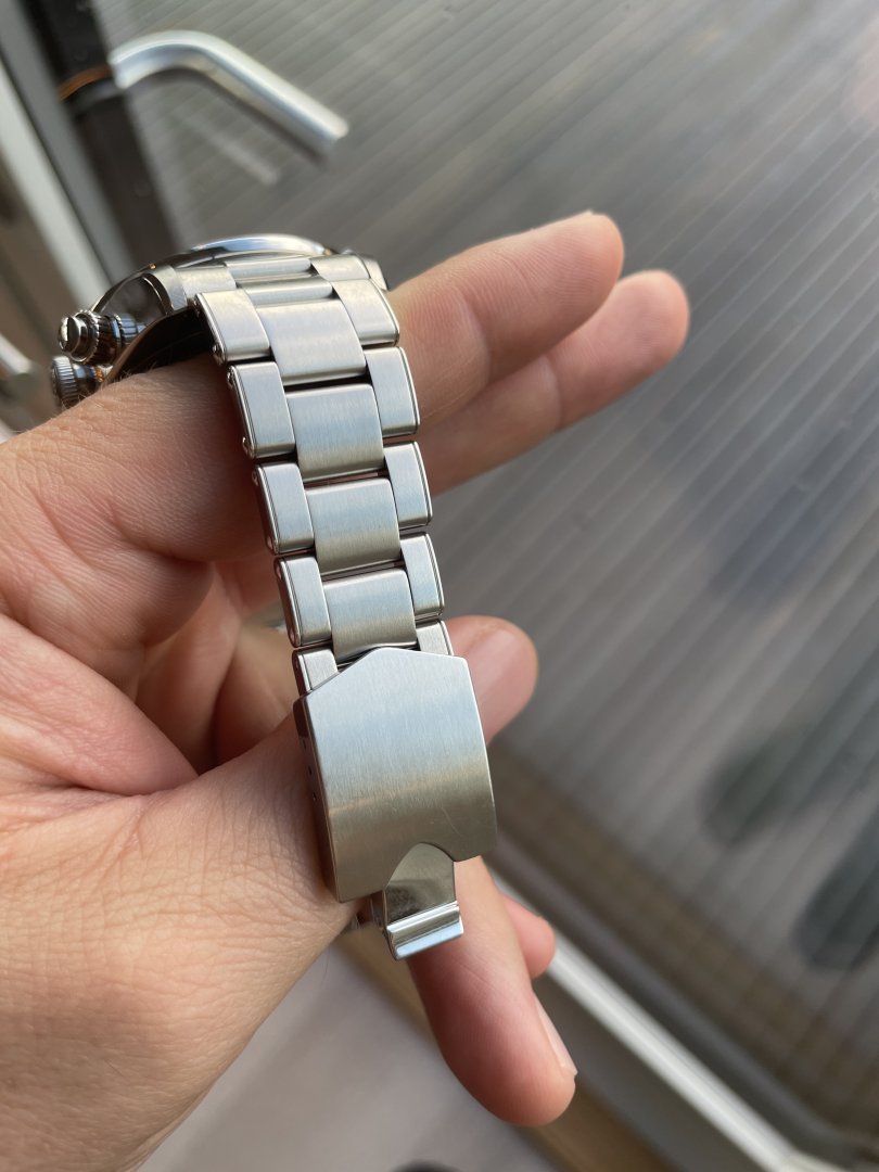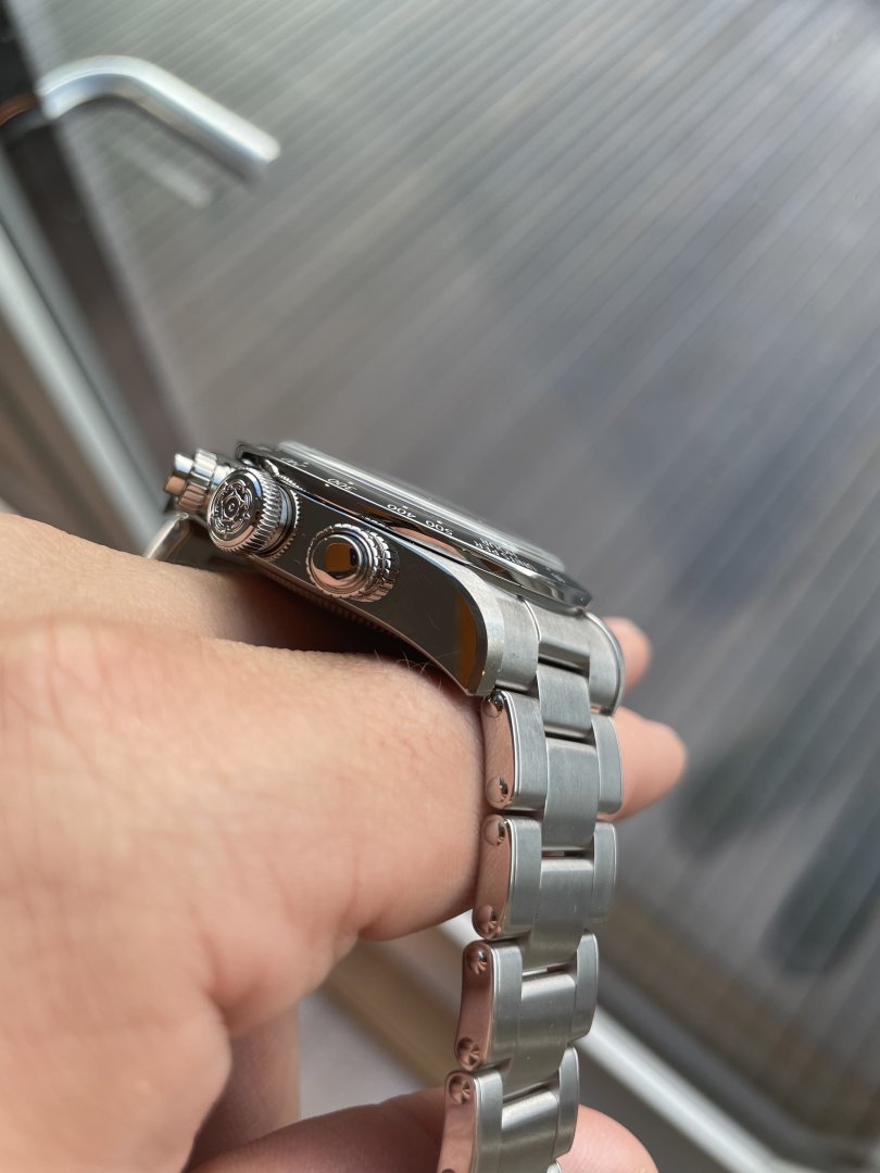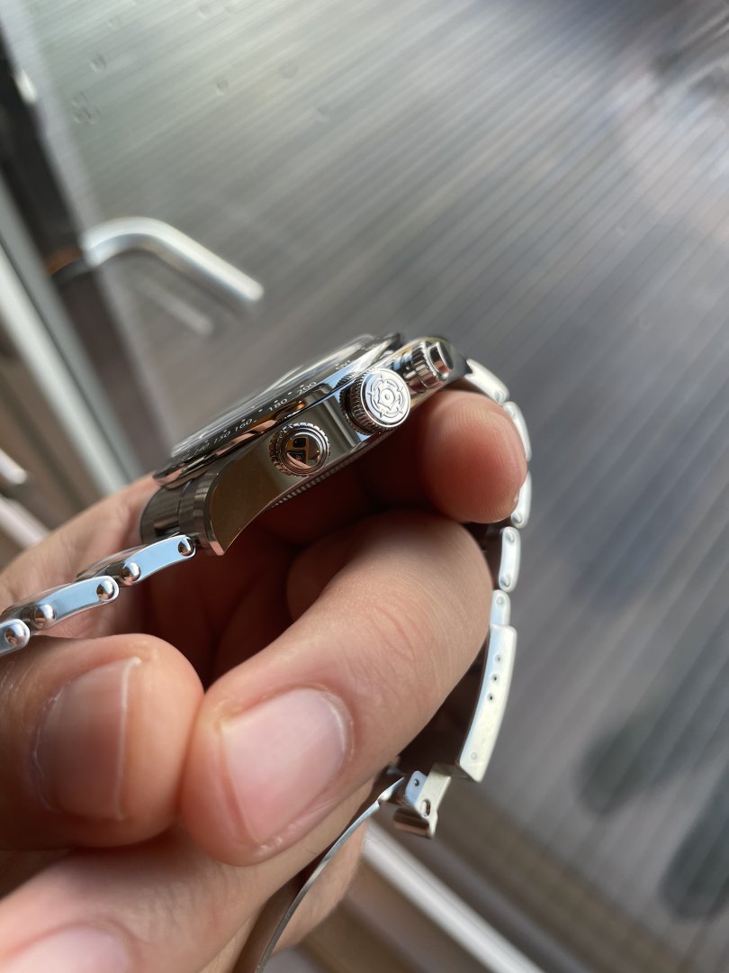 316L steel screw-down pushers at 2 o'clock and 4 o'clock