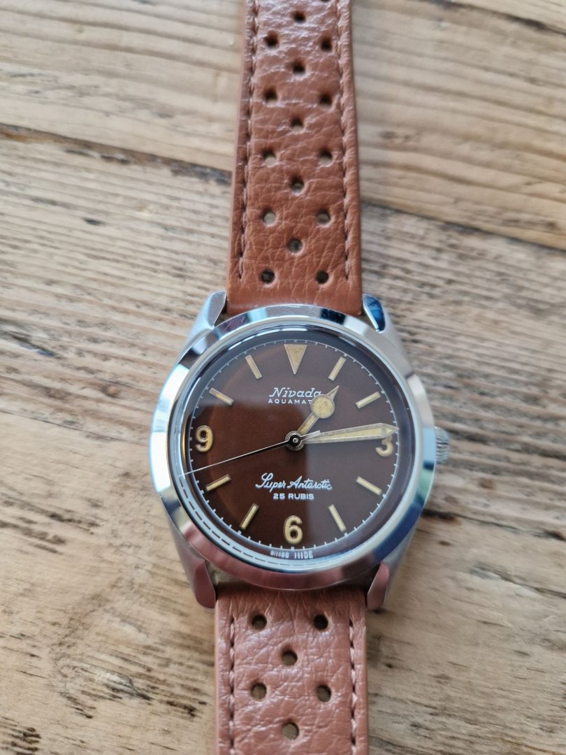 Selger min Nivada Grenchen Super Antarctic 3-6-9 Tropical, kjøpt for ett år siden. Klokken er svært lite brukt og fremstår som ny, uten synlige tegn til slitasje. Denne modellen er kjent for sin klassiske design, holdbarhet og historiske betydning innen klokkeverdenen. Fortsatt et år igjen av internasjonal garanti. Nypris inkludert moms er i dag 11 608,-