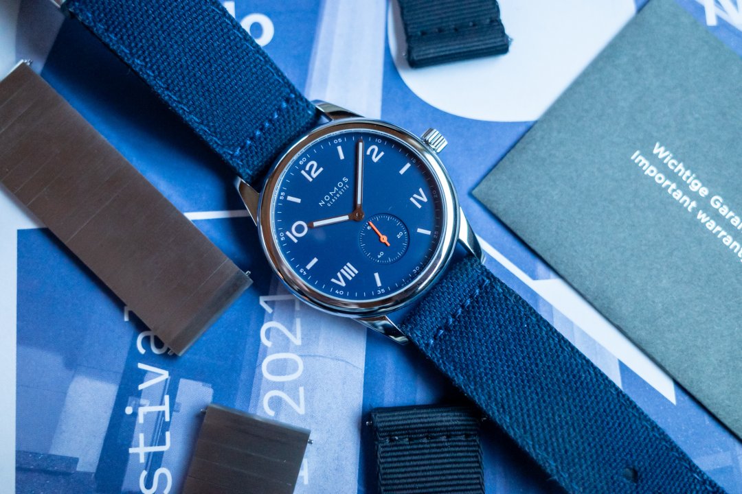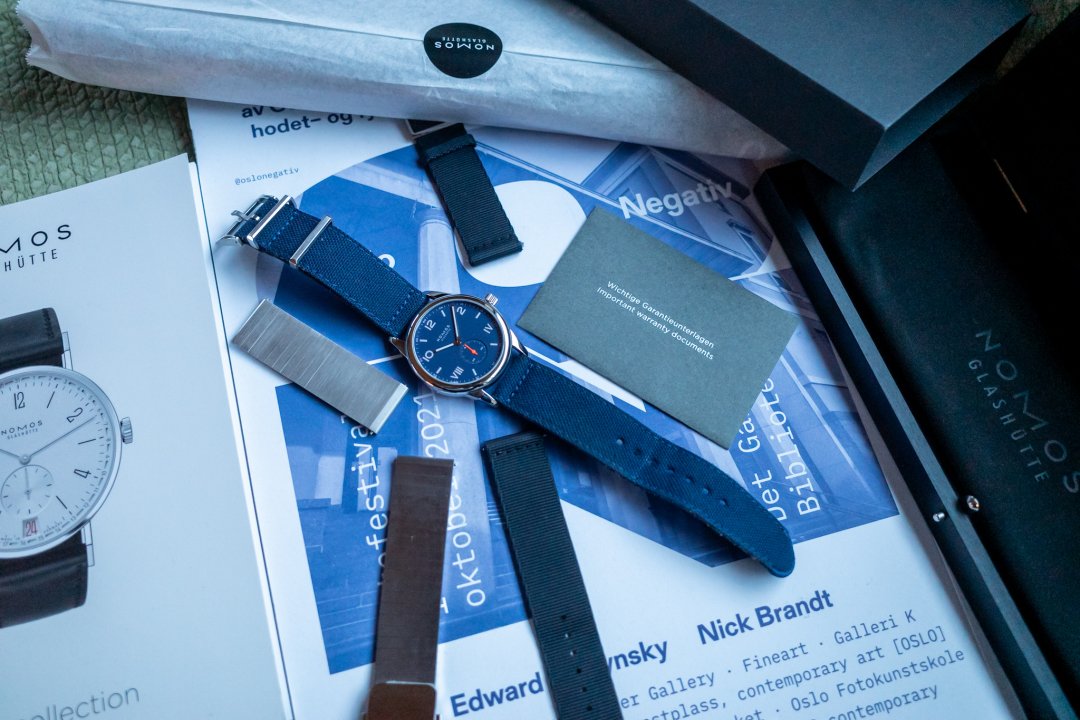 Klokken har stemplet garantikort fra Nomos, kjøpt den 19.03.2025. Den har hatt en eier før meg.