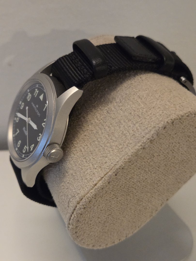 Den originale sorte nato reimen som følger med klokka har ikke vært brukt da jeg testa klokka på noen andre aftermarket reimer.