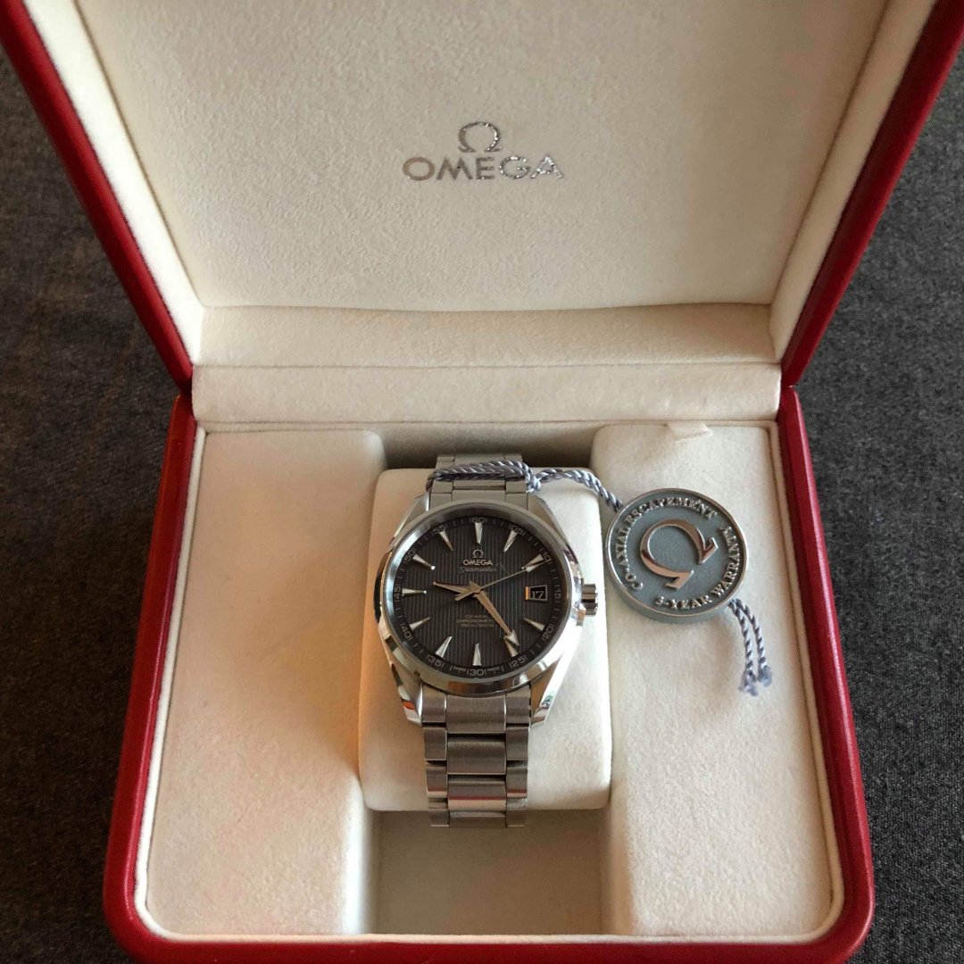 Selger vel holdt Aqua Terra 41,5 mm 150 m, kaliber 8500 co-axial fra April 2009. Norsk kjøpt hos Thune. Fungerer helt OK, forsiktig brukt i rotasjon med andre klokker. Ref: 231.10.42.21.06.001. Stål kasse og lenke. Full sett med eske / boks / sertifikater (kort...).