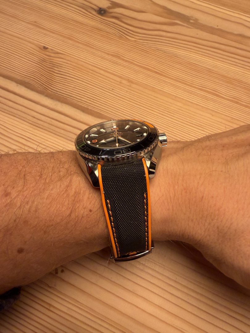 Modell: Planet Ocean 600M – Sort skive med oransje detaljer