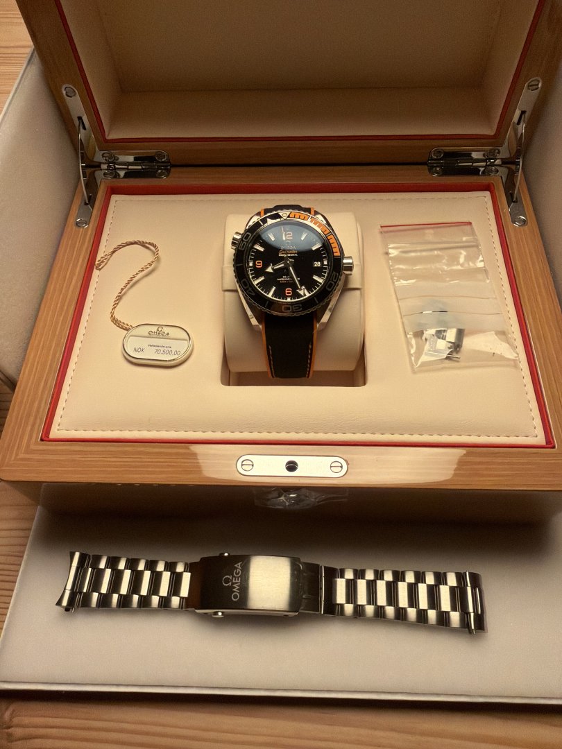 Selges en pent brukt Omega Seamaster Planet Ocean 600M i full boks- og papirutrustning. Dette er den nyere generasjonen med Master Chronometer-sertifisering, antimagnetisk verk og gjennomsiktig baklokk. Klokken går presist og fungerer som den skal. Jeg er andre eier av uret.