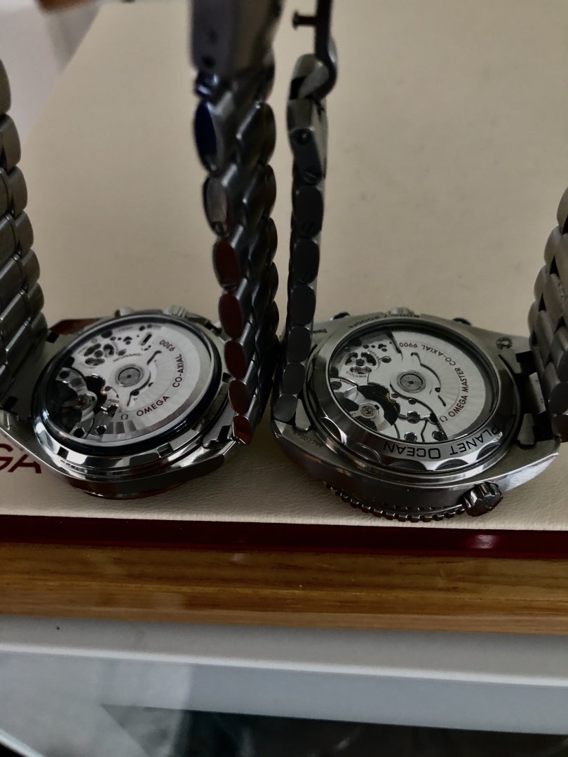 Blå Omega Seamaster Planat Ocean Chrono cal. 9900 og dette er den nye typen lik den i dag.