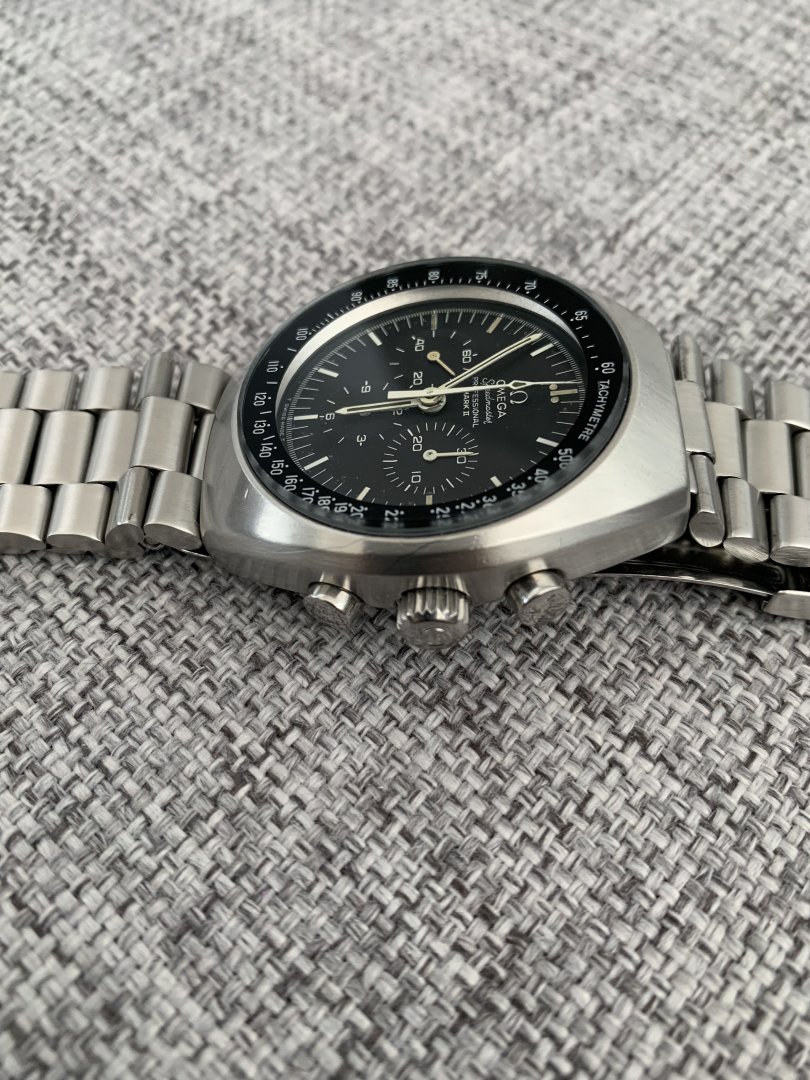 Omega Speedmaster MK2 i følge serienr er den fra 1972, cal 861 manuelt opptrekk. Org Omega lenke med 1116 lås.