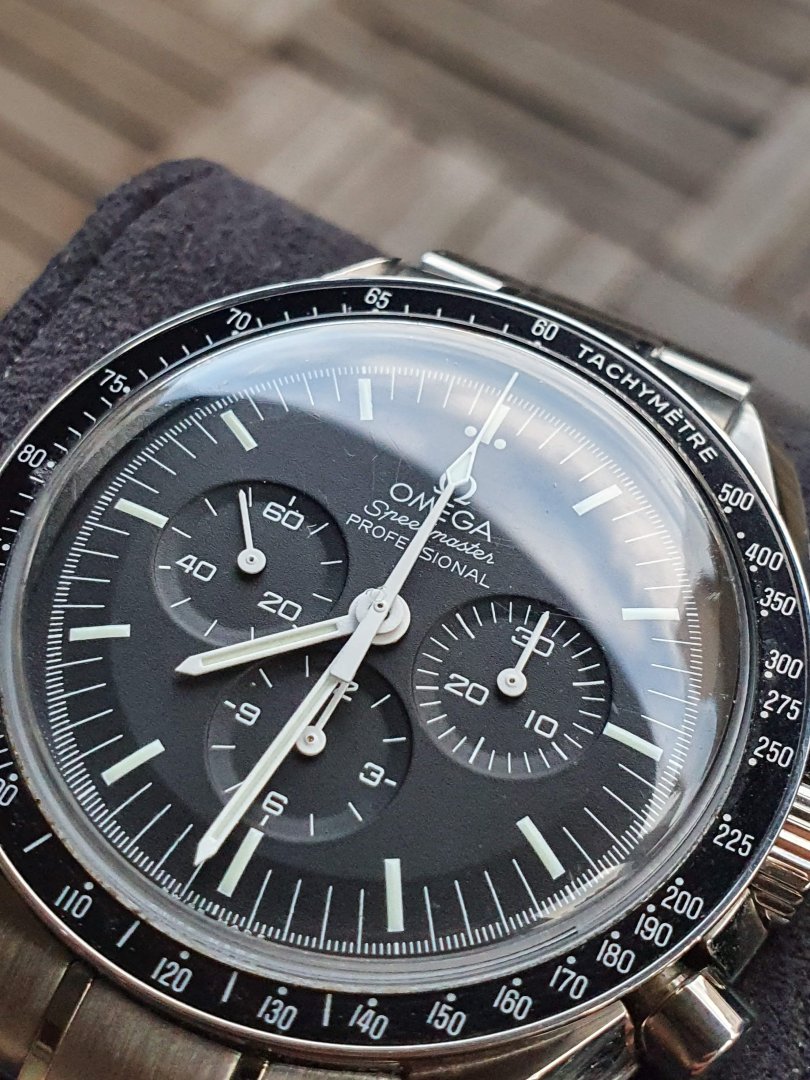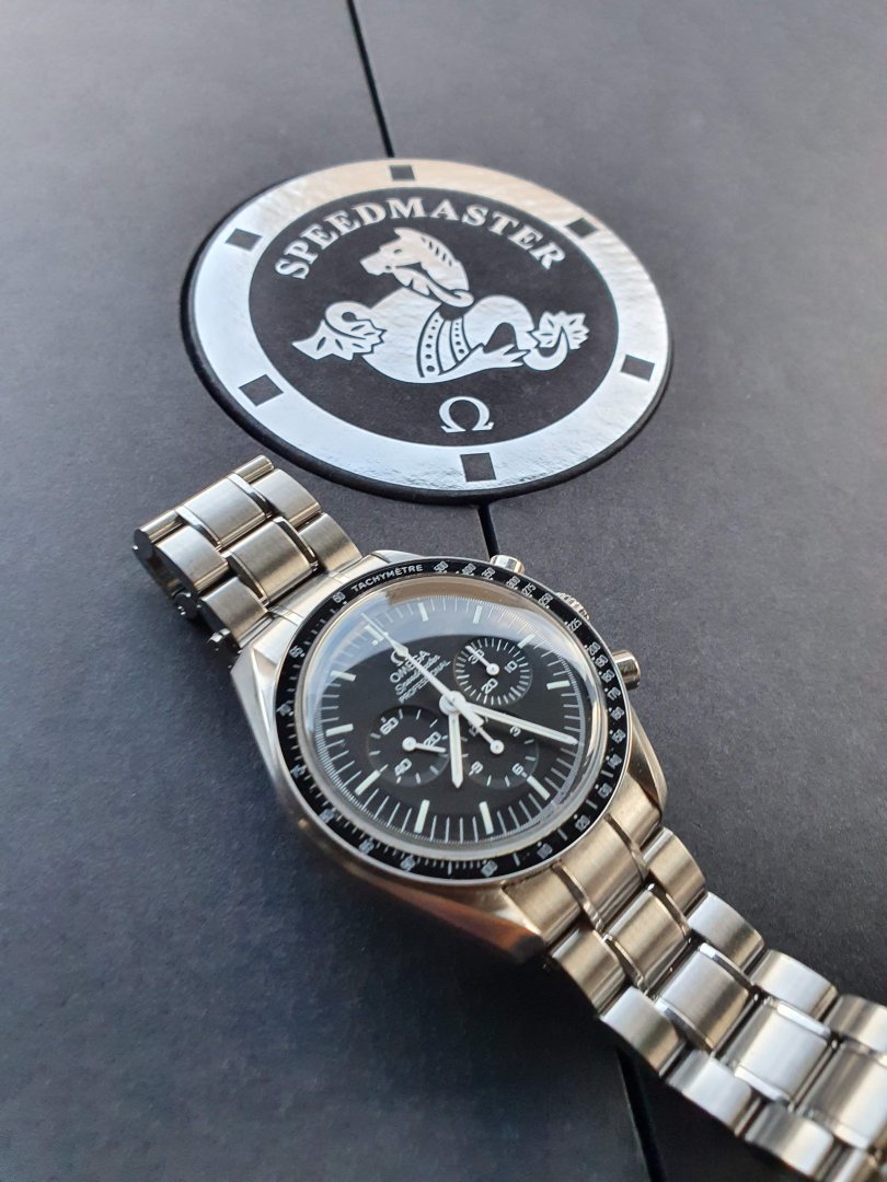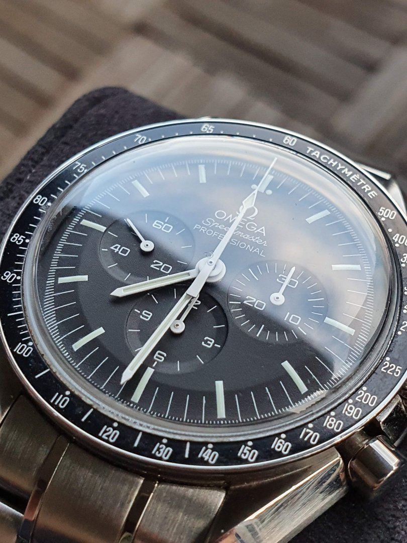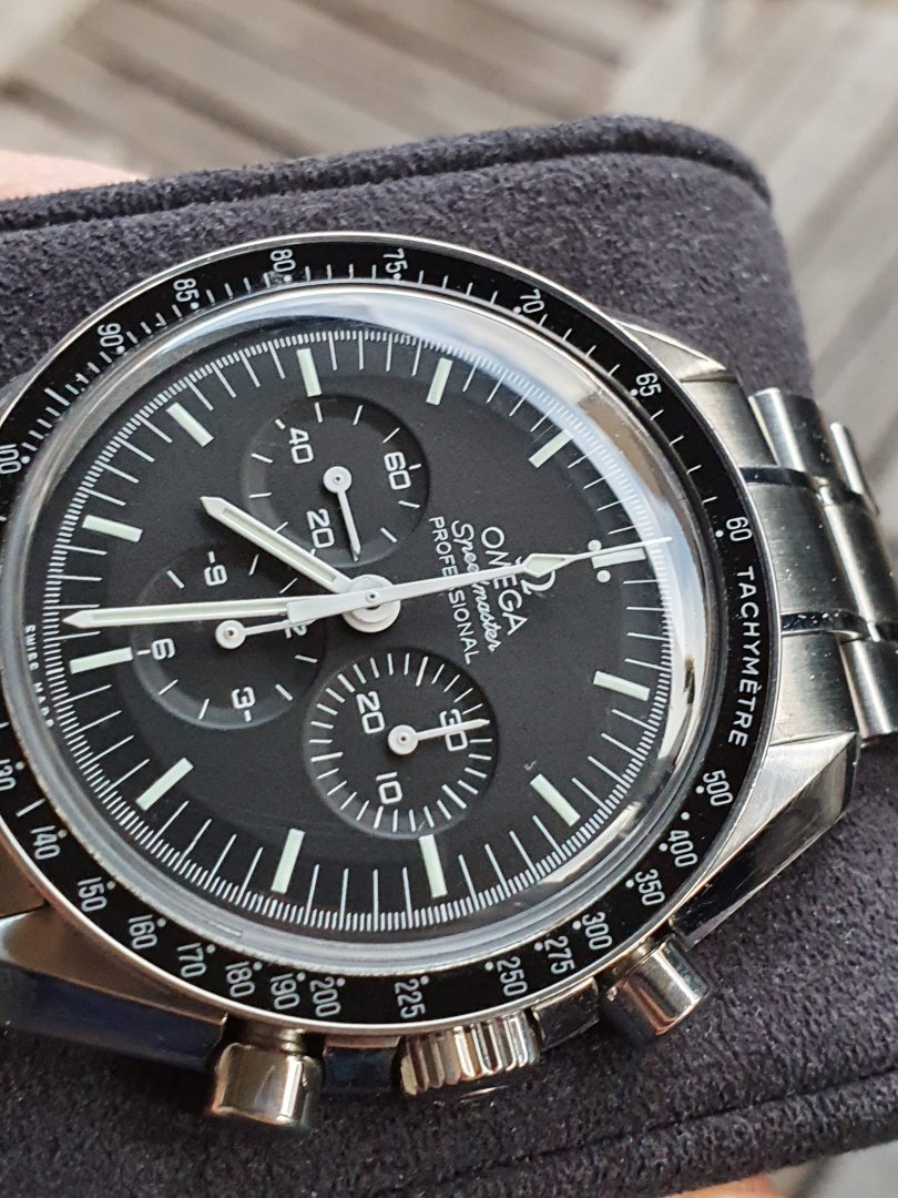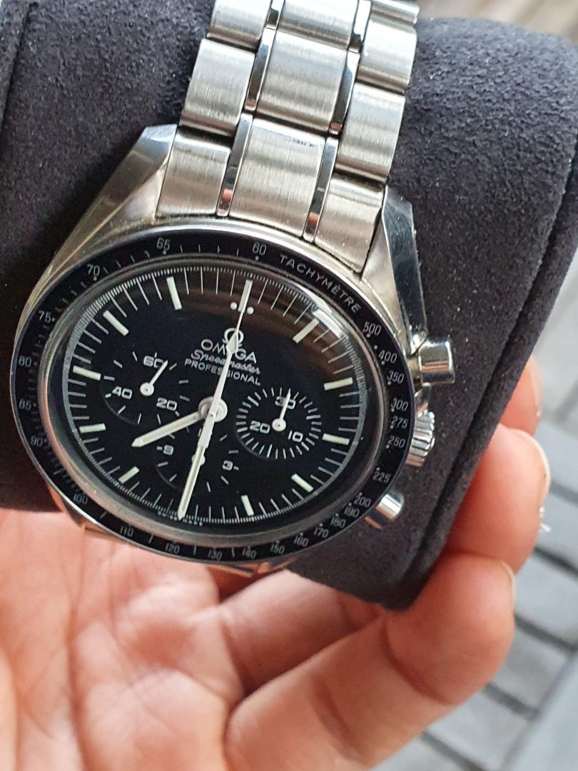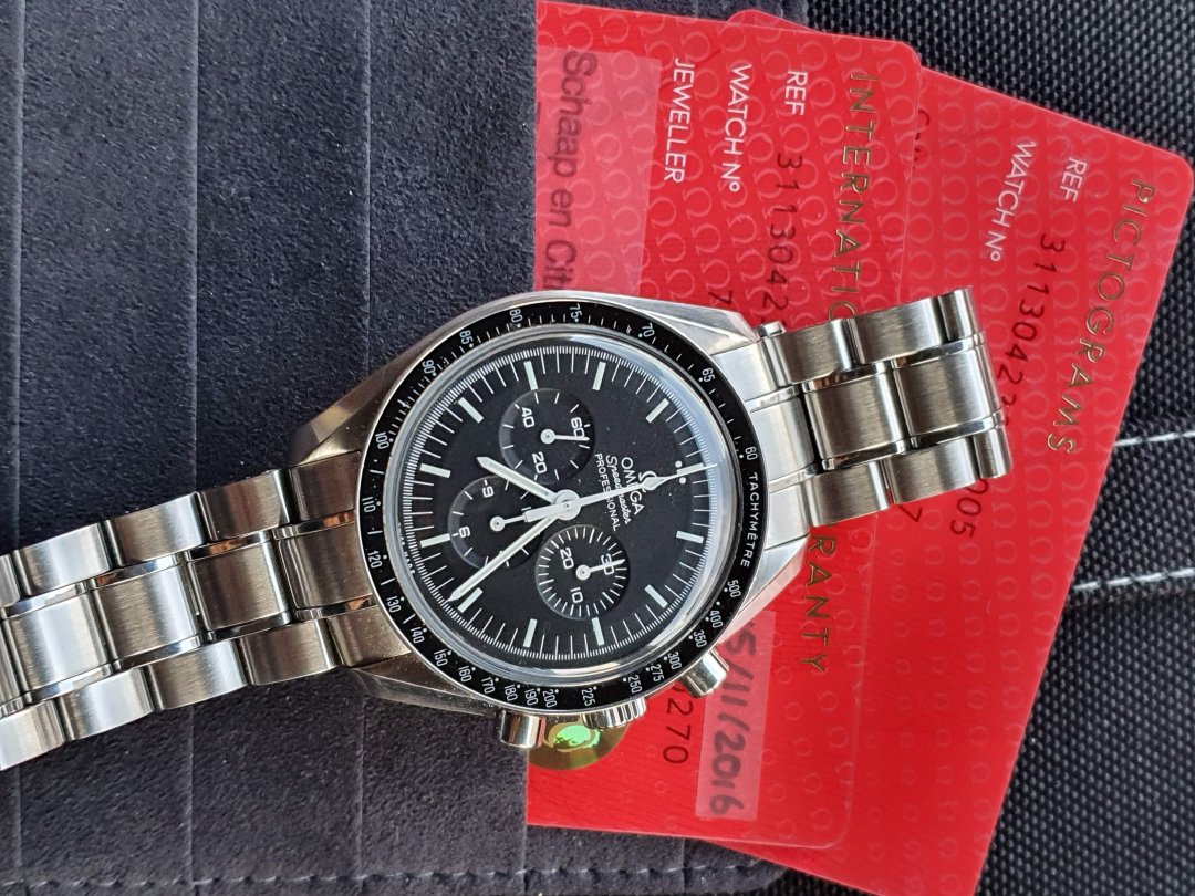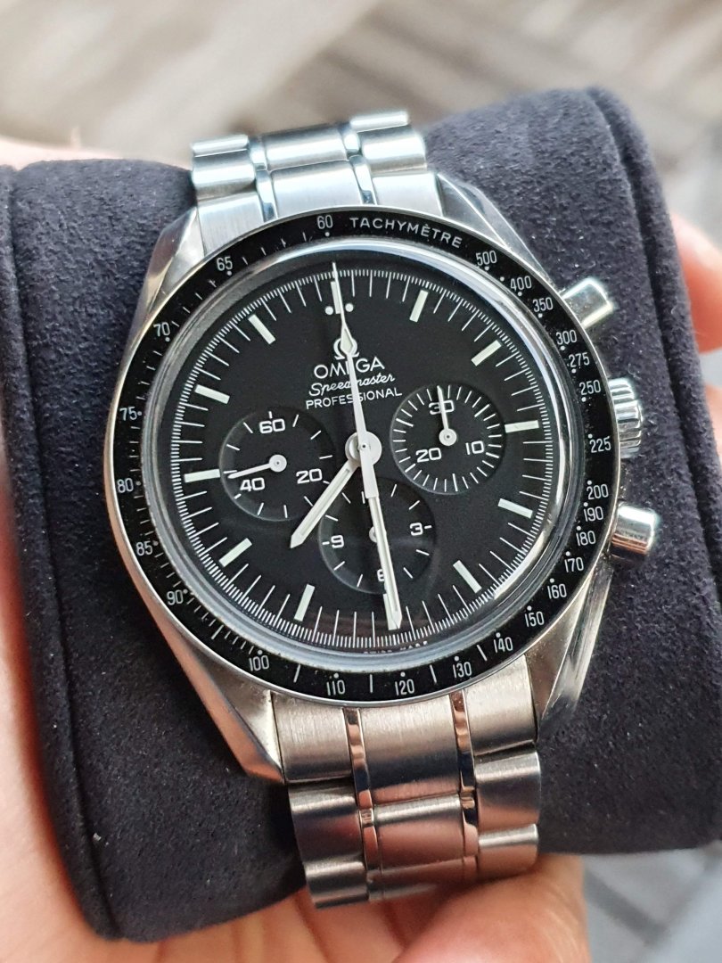 Selger en Omega Speedmaster Moonwatch. Denne er kjøpt ny fra urverket.no i november 2016, kvittering medfølger, så mva er ikke noe problem. Brukt nesten daglig, så riper finnes.
