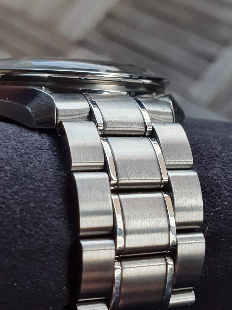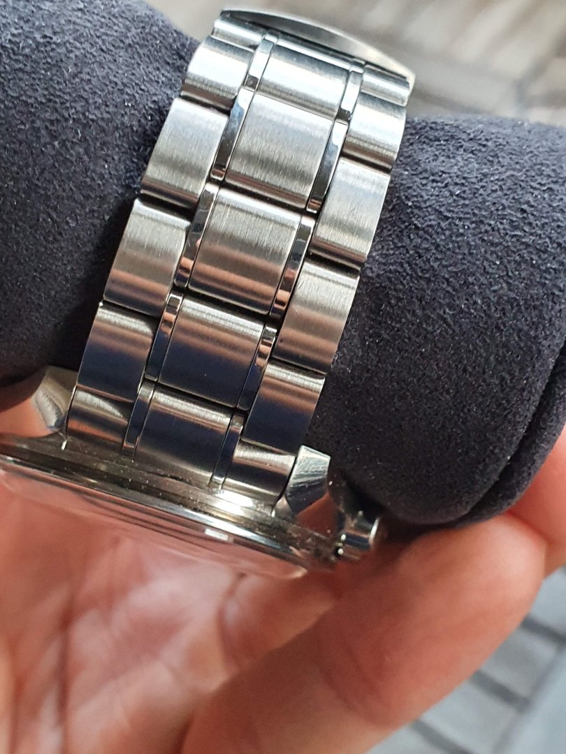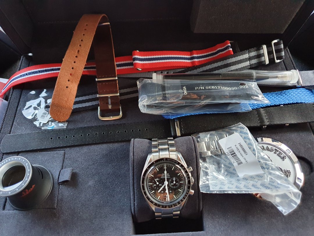 Kommer i den store sorte boksen med diverse tilbehør (lupe, booklet, velcro- og natostrap, verktøy og lenke/reimbytte og sertifikat).