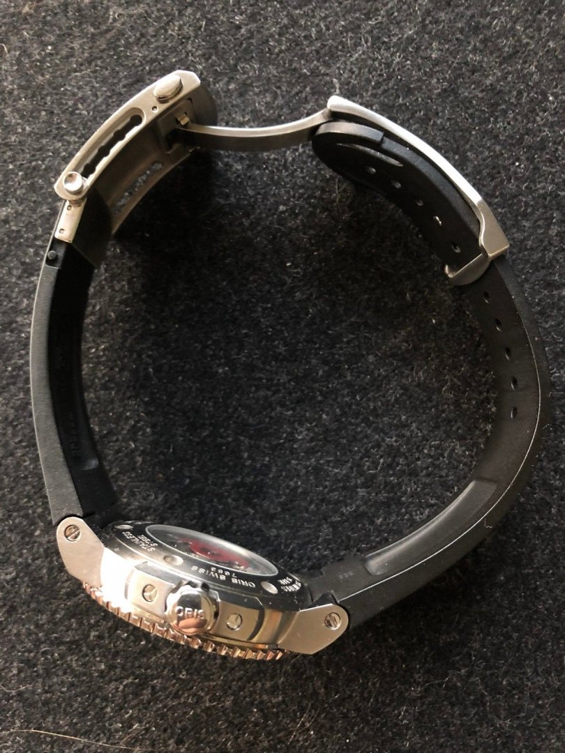 Klokken fremstår veldig pen med et fint helhetlig uttrykk. Litt hairlines på clasp etter desk diving, et lite merke på gummireim bed clasp og en minimal ripe på kassen ved lug. Veldig bra lume.