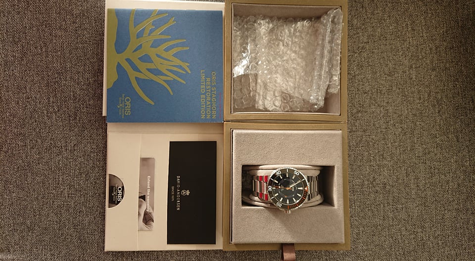 Selger en strøken og liten brukt Oris Staghorn Limited Edtion. Jeg er andre eier. Klokken har blitt brukt lite. Har hatt andre type Oris tidligere men denne er den tøffeste Oris jeg noen gang har fått på hånda. Synd at den må gå videre da jeg må prioritere økonomi til noe annet. Klokken er kjøpt ny 19.04.2018 hos David Andersen.