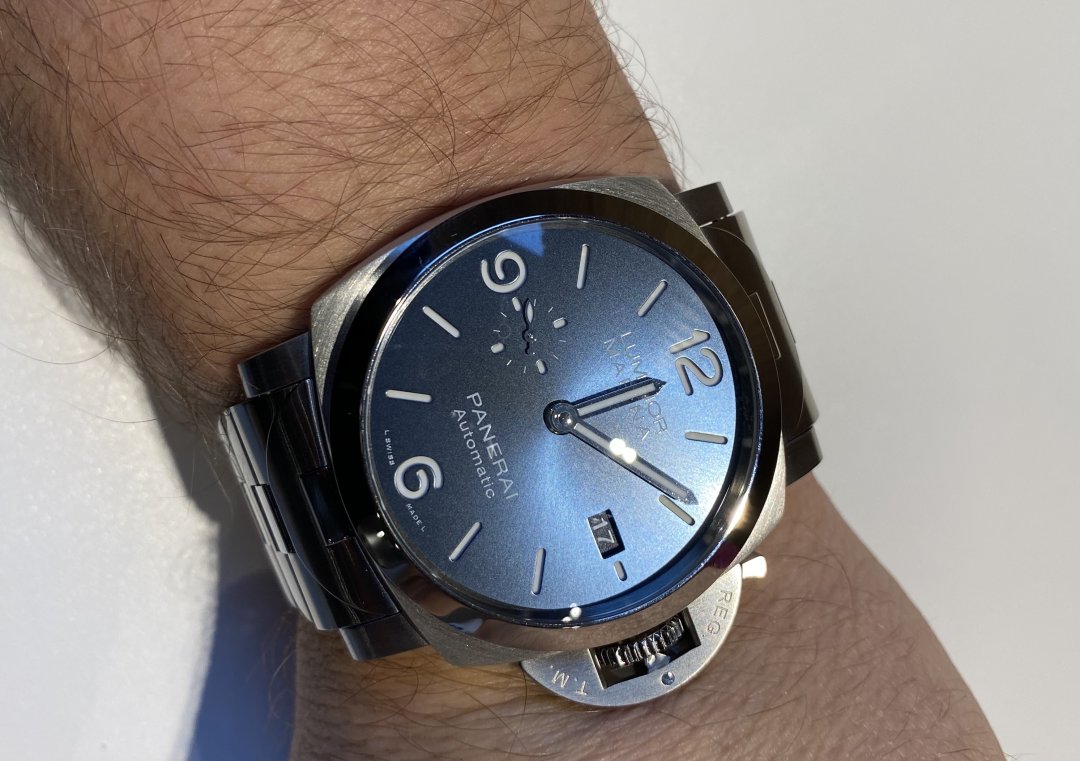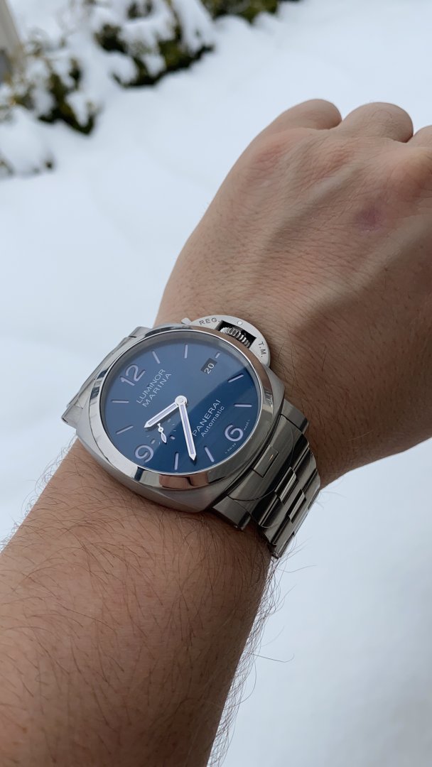 Jeg selger min Panerai Specchio Blu 1316, da den ikke får armtiden den fortjener.