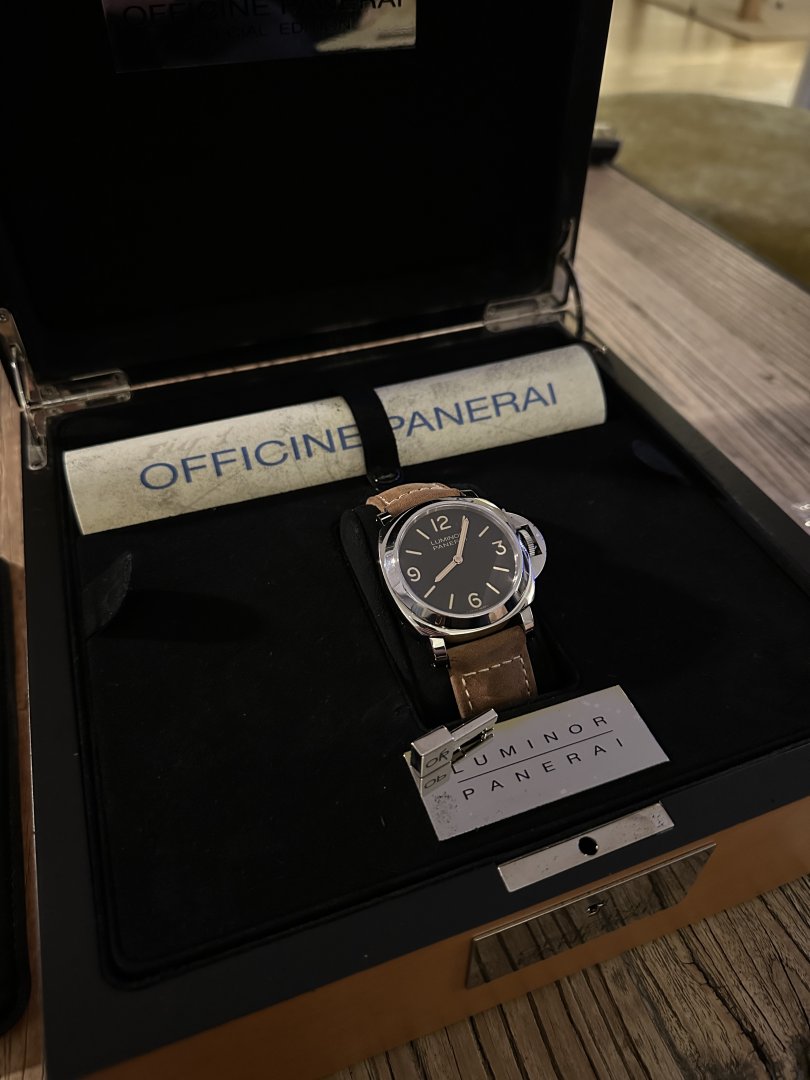 Her er en unik mulighet(hørt den før?) til å anskaffe en Panerai det finnes svært få av i landet. Tilstanden er 100% som ny. Det finnes ikke spor av bruk. Hverken på kasse eller reim. Meg bekjent er det 3 eller 4 av denne(min inkludert). I denne ubrukte/ NOS tilstanden finnes det ingen. Modellen heter ble lansert i 2011 som en "boutique only". Klokken kan være alt fra en seriøs dykker(300m) med gummireim, til en kul dressklokke på croco eller til casual på en kul canvasreim. For de som ikke er vant med Panerai fra før; Skifte av reimer er gjort på under 1 min.
