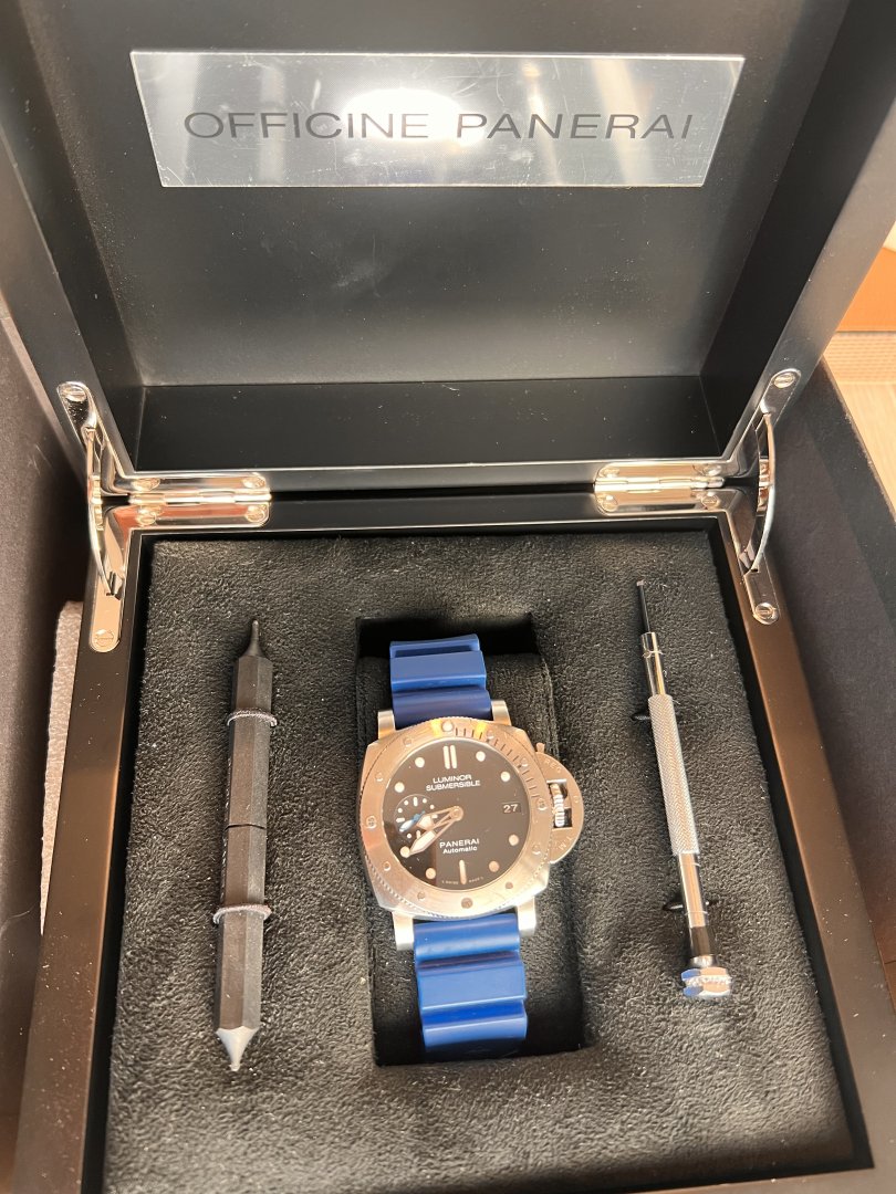 Det medfølger også flere originale remmer fra Panerai. Se bilder.