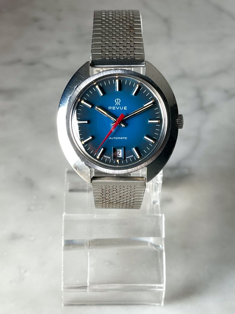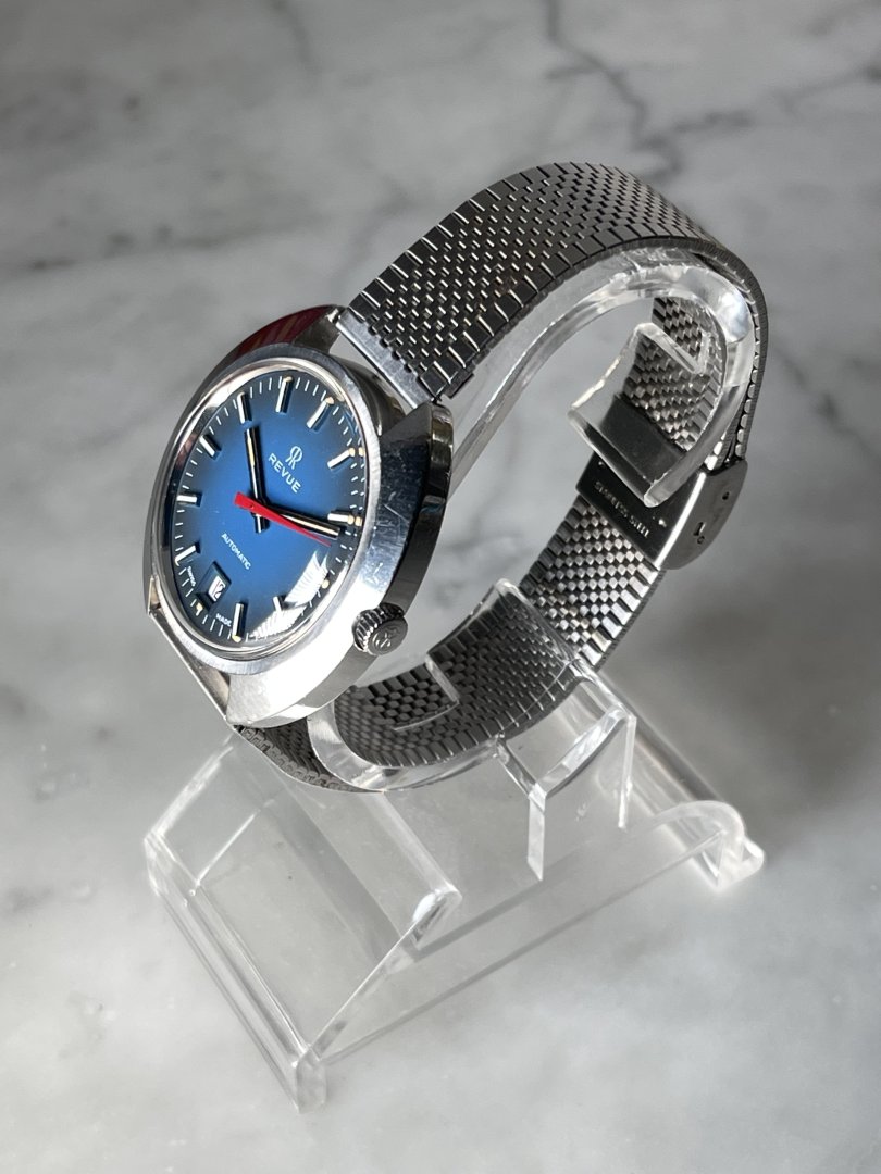 Selger min helt nyservede vintage Revue klokke. Den har fått full service i desember 2022, men blir dessverre ikke brukt. Diameter er 40mm, så den har god størrelse og bærer bra. Automatisk verk med god gangreserve. Kommer på lenke + 3 reimer.