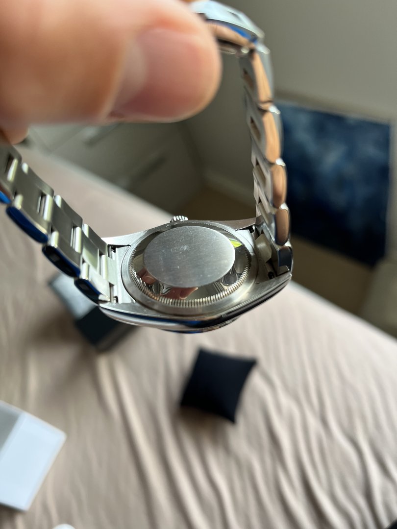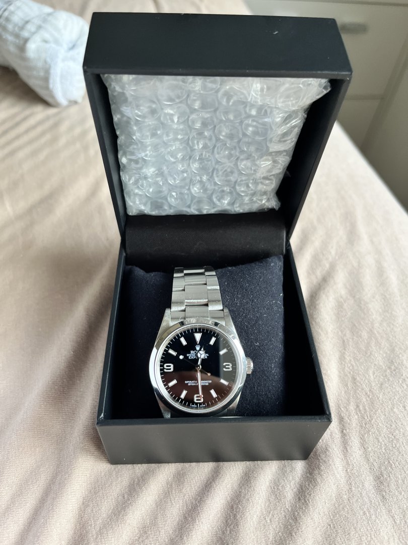 Foretrekker fysisk overlevering, betaling på konto ved overtakelse. Vurderer å selge da jeg er på jakt etter en annen klokke. Send melding ved spørsmålFor bytte er jeg svært interessert i omega aqua terra 38,5 mm eventuelt Rolex OP 34 mm, av nyere dato.