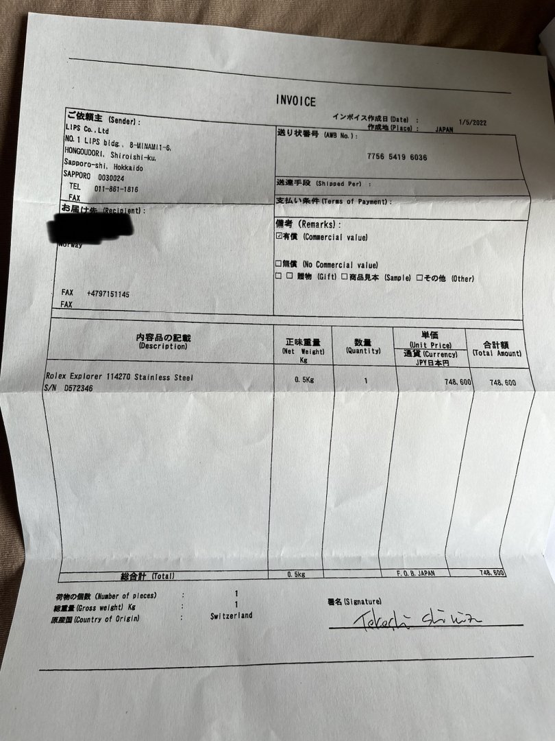 Opprinnelig kjøpt i Hong Kong og mva er betalt og dokumentert.