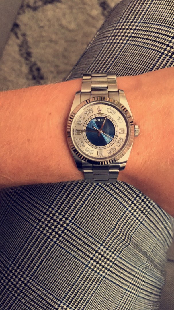Selger her en fantastisk Rolex 116034. Dette er en utgått modell som svært sjeldent dukker opp på bruktmarkedet. Klokken går ufattelig presist, og her er det ikke servicebehov.