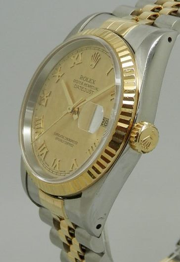 Rolex Datejust 16233 i guld/stål, pyramid dial, fra 1991, automatic, 36 mm i diameter, super stand, dog uden boks og papirer.