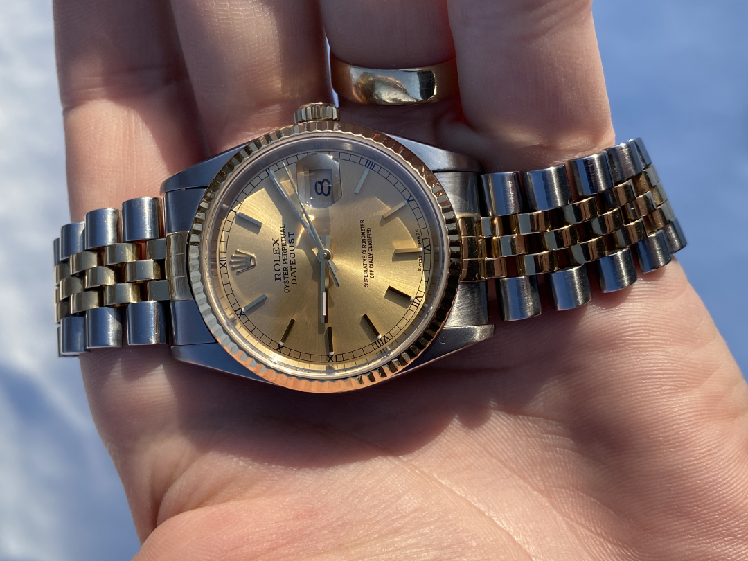 Selger en veldig flott Rolex Datejust 16233 36mm Two-tone. Klokken har nettopp vært på service og går som den skal.