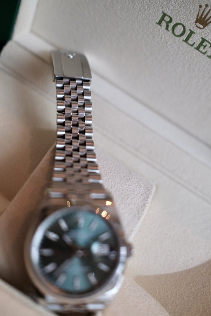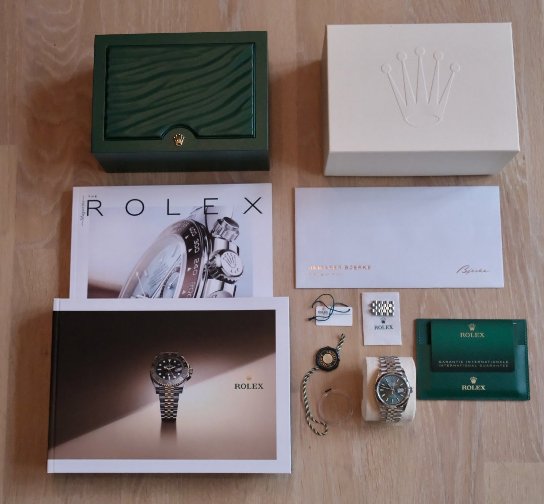 Selger en Rolex Datejust 36mm med Jubilee-lenke og den fantastiske Mint Green-skiven (ref. 126200). Selges komplett, pent brukt, med bare noen uunngåelige "tastatur-hairlines" på låsen. Kjøpt på Bjerke i 2024, kun én eier. Kvittering, garantikort, boks osv. er selvfølgelig med.