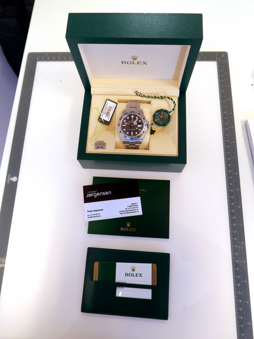 Selger en komplett og pent brukt Explorer II, kjøpt av forrige eier (som går under navnet TimeFactor her på forumet) på Jørgensen i slutten av januar 2016. Med grønn tag og 5 års garanti. Alt medfølger.