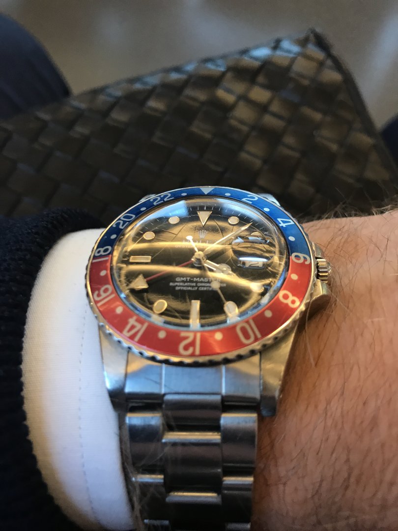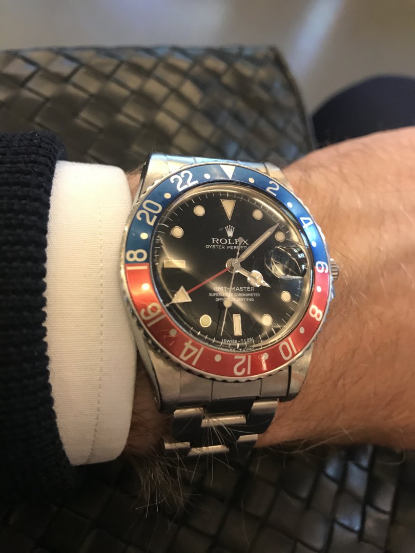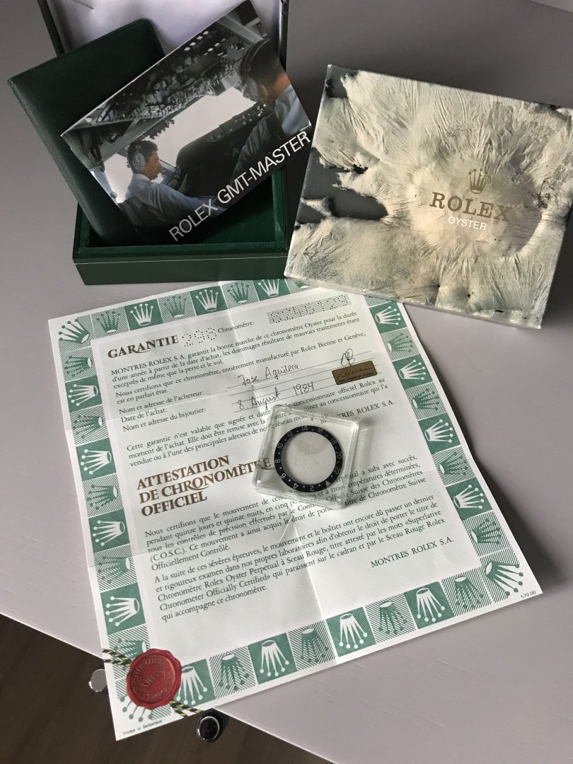Som titeln säger så är detta en: Rolex GMT-Master (40mm) Ref.: 16750 Pepsi med Plexiglas och Spider Dial från 1984