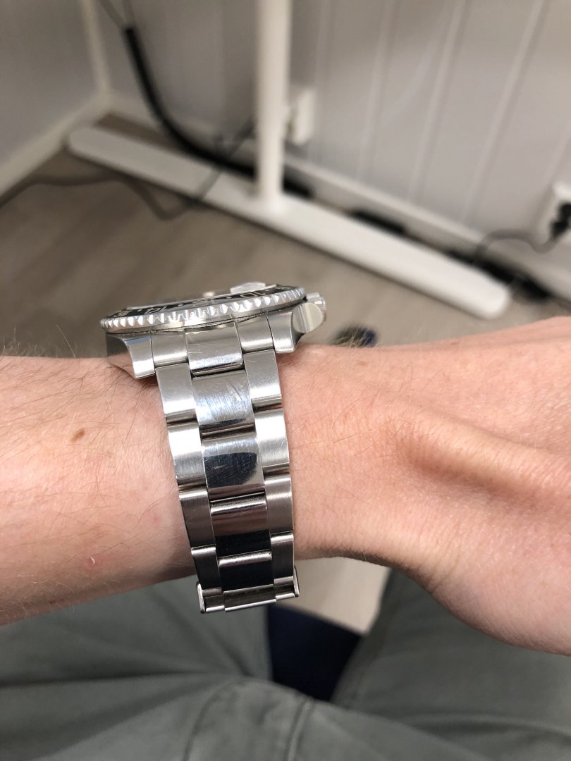 Spesifikasjoner, beskrivelse og tilstand: 40mm diameter, 20mm Lug. Klokken har de normale hairlines og viser at den har blitt brukt. Et lite hakk ca klokka 5 på nedre hø Lug. Dette er kun synlig hvis man ser nøye etter og kan polerer vekk.